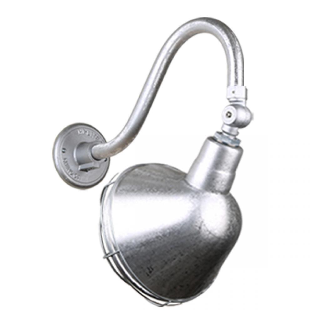 Gooseneck model # H-QSN18110-SA is part of our Angle Shade series, which features traditional light shade designs. It measures 11 1/2 inches high by 10 inches wide. Available finishes include Black (91), White (93), Galvanized (96), and Oil Rubbed Bronze (145). A selection of gooseneck arm styles is available. Shade can be accessorized with an adjustable swivel knuckle and/or wire guard. Canopy, gooseneck, and shade can be coated in any of the available finishes.