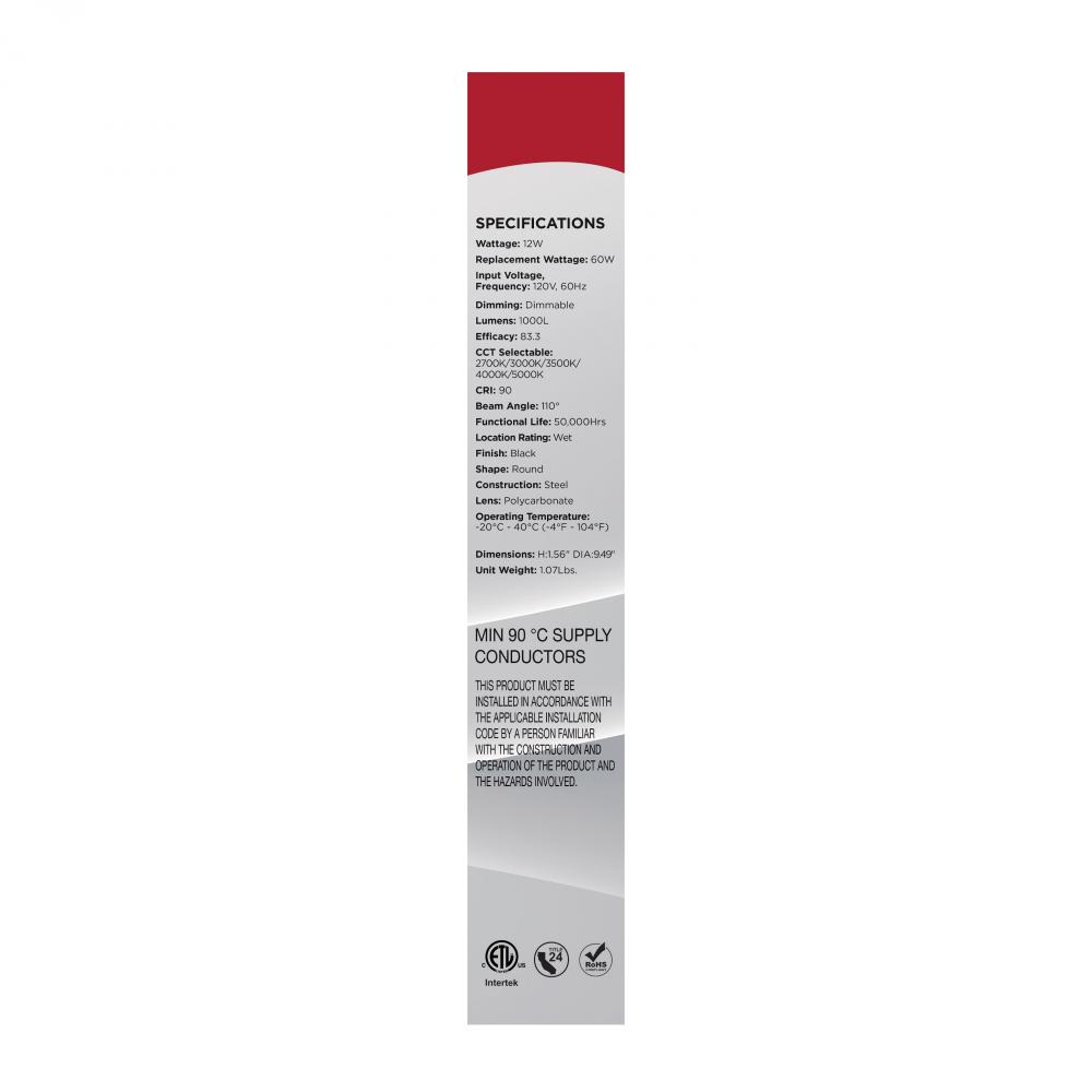 Designed for larger spaces, SATCO NUVO's 62-1814R1, 10" CCT Selectable Disk Light in a black finish delivers powerful, customizable illumination with a sleek, low-profile look. Consuming just 12 watts, this high-performance fixture features five se