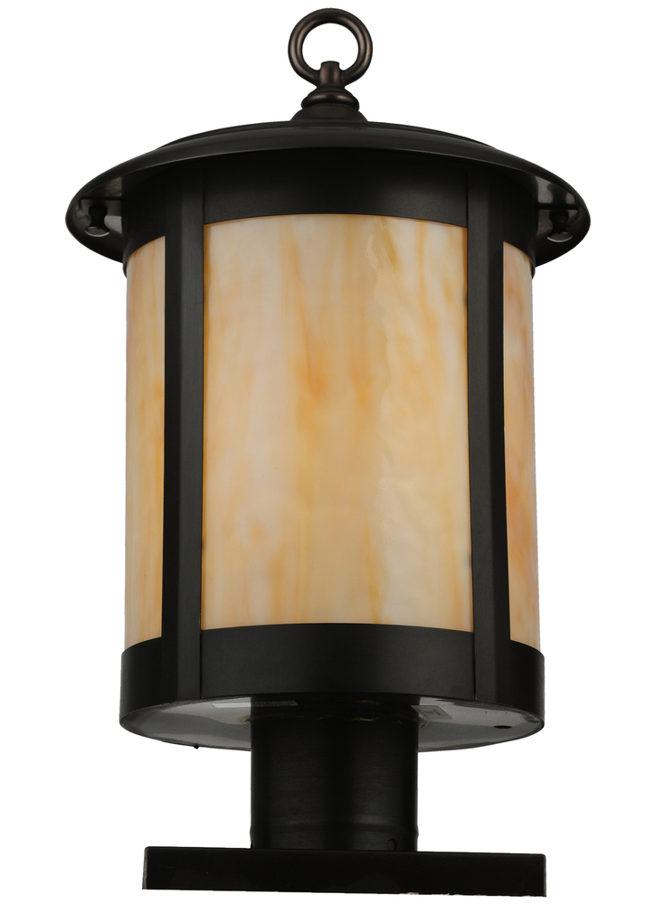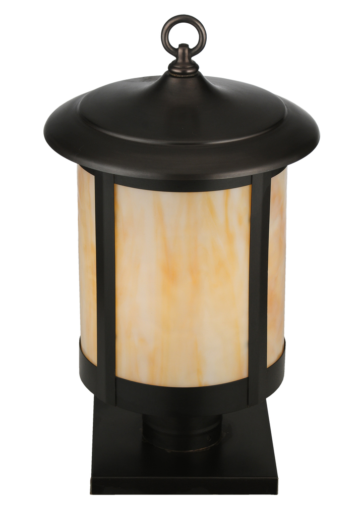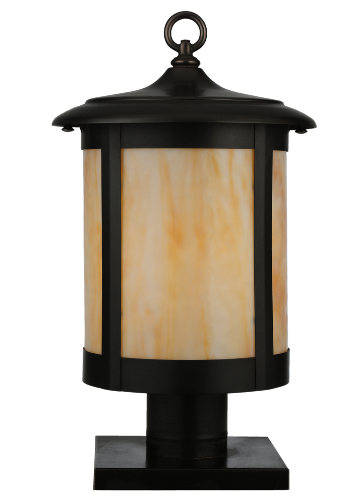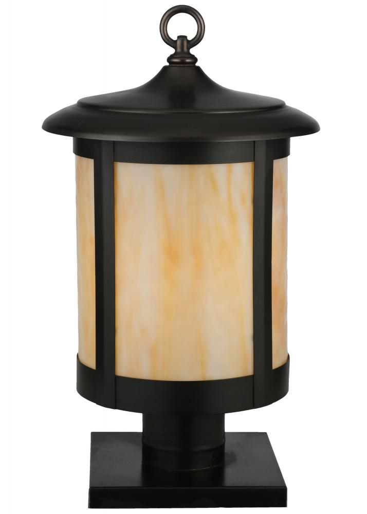 Handcrafted from Solid Brass to achieve handsome rustic beauty. This stunning Craftsman styled lantern features a Beige Art Glass diffuser that is enhanced with a Craftsman Brown finish. The Post Light can be mounted to a round post or column on piers and decks while providing beautiful ambient lighting in the great outdoors; as well as for indoor lighting applications. The Fulton Prime Post Mount is featured in our American made; American designed handcrafted Craftsman Signature Series. Manufactured in Yorkville; New York. UL and cUL listed for dry; damp and wet locations.