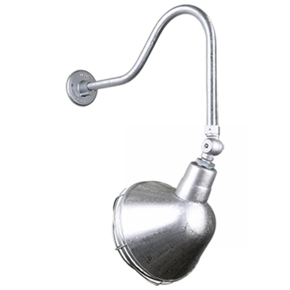 Gooseneck model # H-QSN18112-SA is part of our Angle Shade series, which features traditional light shade designs. It measures 13 3/4 inches high by 12 inches wide. Available finishes include Black (91), White (93), Galvanized (96), and Oil Rubbed Bronze (145). A selection of gooseneck arm styles is available. Shade can be accessorized with an adjustable swivel knuckle and/or wire guard. Canopy, gooseneck, and shade can be coated in any of the available finishes.