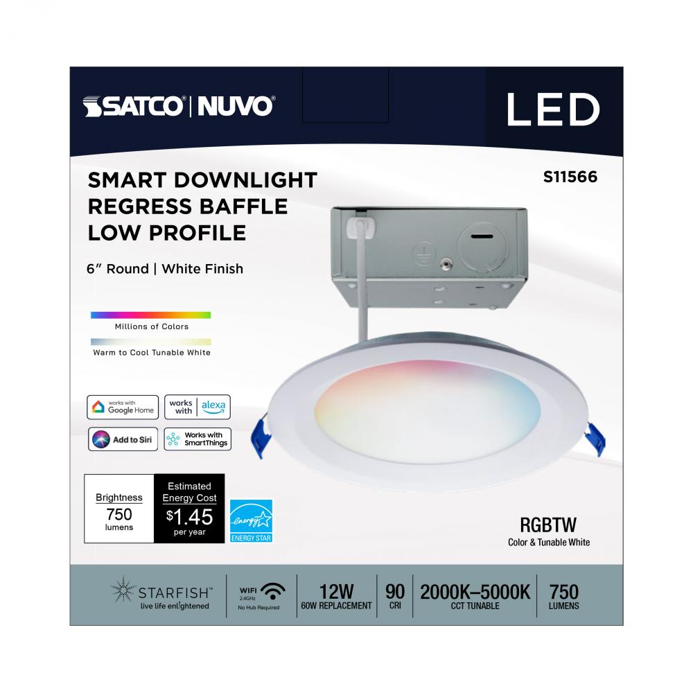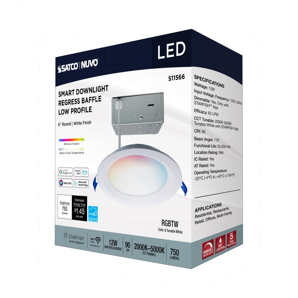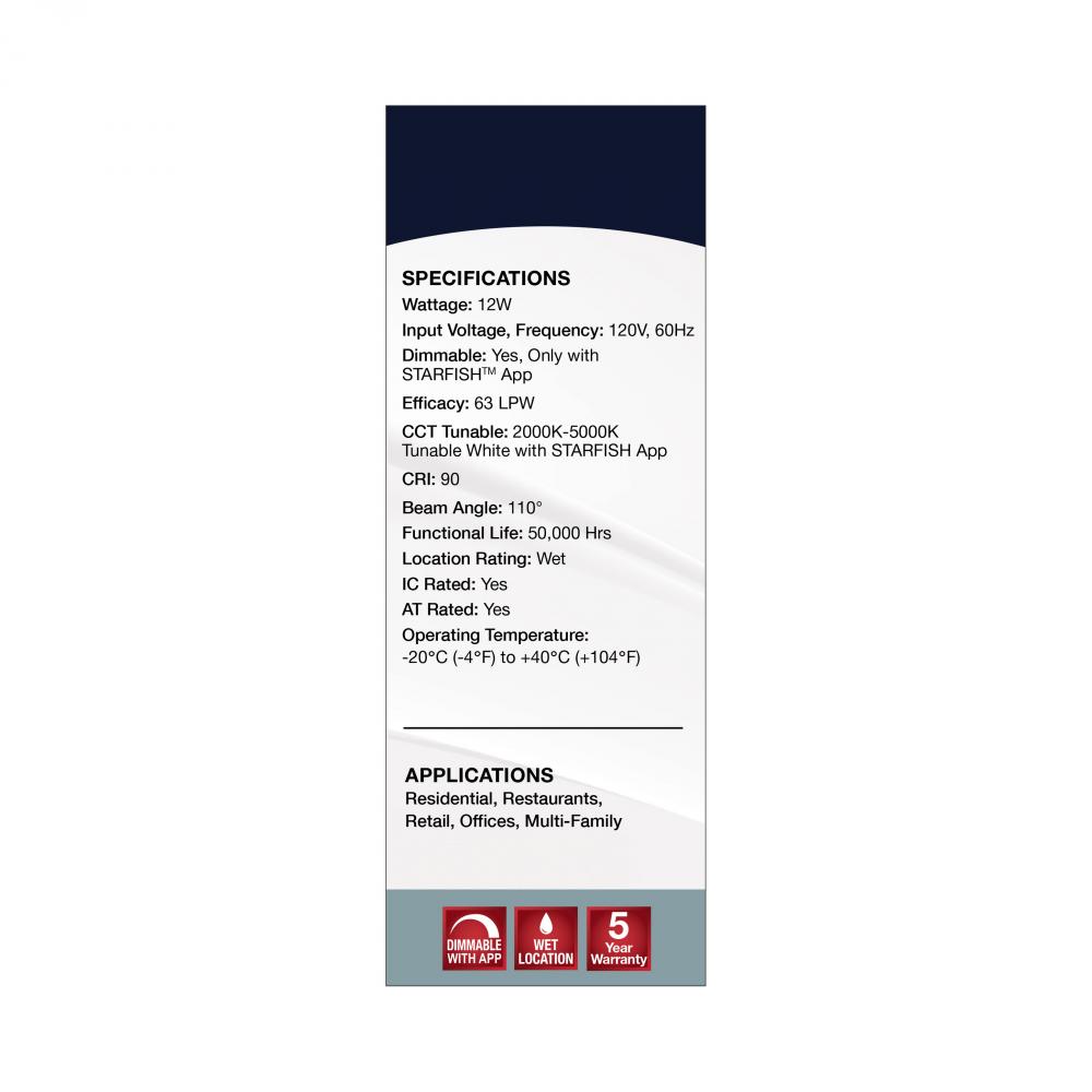 SATCO NUVO's S11566 LED Slimfit Downlight with STARFISH technology is the ultimate choice for smart lighting and ambiance control. Download the STARFISH app to customize any tunable white color temperatures from 2000K warm white to 5000K natural light