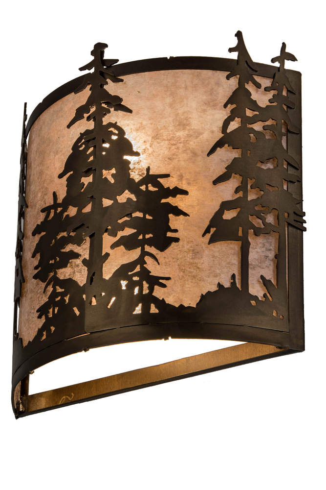 Capture the allure of rustic charm as a dramatic stand of Tall Pine Trees is highlighted as the morning sun rises in the background of this fixture. The decorative accents and hardware are featured in an Antique Copper finish; which are complemented with a stunning Silver Mica diffuser. The sconce is handcrafted by expert artisans in the Yorkville; New York manufacturing facility at the foothills of the magnificent Adirondack Mountains. Custom colors; styles; sizes and dimmable energy efficient lamping options such as LED are available. The wall luminaire is UL and cUL listed for damp and dry locations.