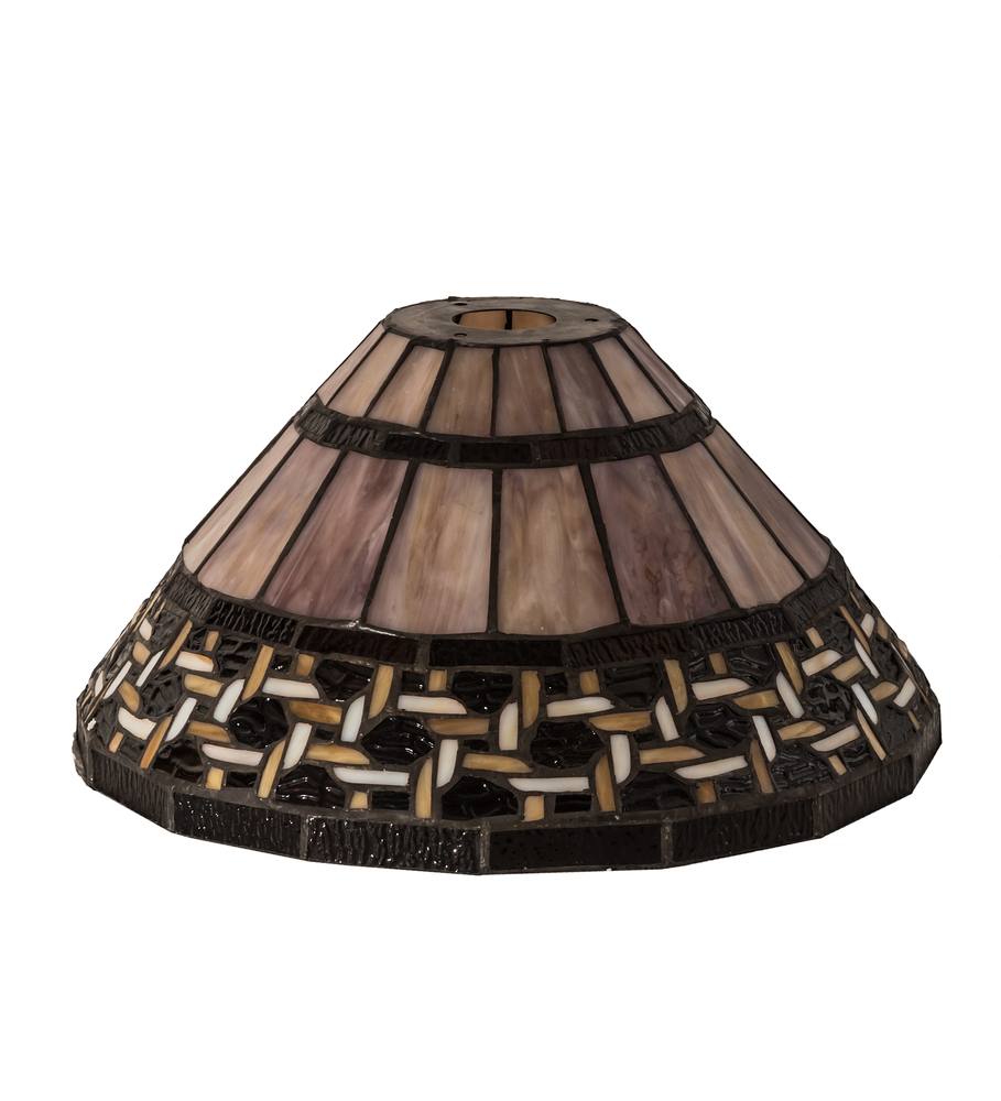 Named for the Greek word for light; Ilona will stir conversations among family and friends with a dramatic Honey and Beige colored knotwork design on Wispy Blue/Green Rippled glass. The background includes Beige; Mauve and Purple art glass while Root Beer colored glass borders enhance the beauty of this exquisite art glass shade; which is created using the famous Meyda Tiffany copperfoil construction technique. Pair with a base to create a table or floor lamp; or build a wall or ceiling fixture with appropriate hardware. The Ilona Shade is included in our American designed; handcrafted Stained Glass Lighting Collection. Each shade is a unique work of art with color variations based on natural ingredients inherent in the glass.