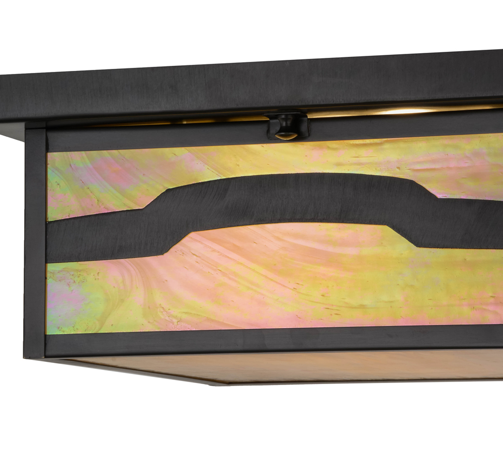 Handcrafted of Solid Brass; an abstract mountainside design comes to light with this Craftsman Signature lantern. This striking fixture features a Beige Iridescent art glass diffuser with hardware and accents featured in a Craftsman BRown finish. handcrafted by Meyda artisans in our Yorkville; New York manufacturing facility; at the foothills of the glorious Adirondack Mountains. Custom styles; colors and sizes are available; as well as dimmable energy efficient lamping options.