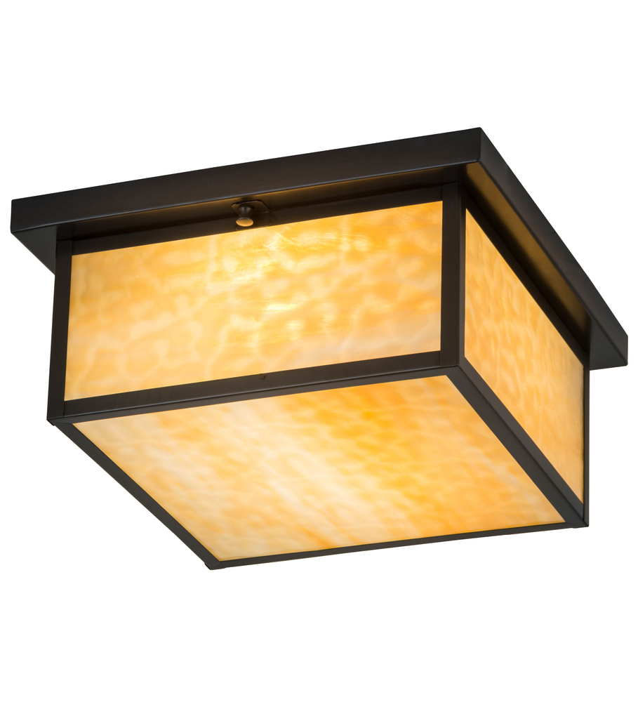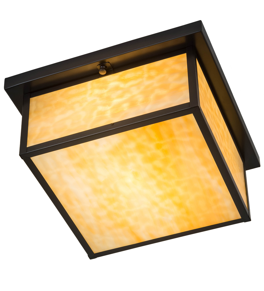 Custom crafted of Solid Brass; this striking Craftsman Signature lighting design is inspired by the Arts and Crafts Movement. The striking Mission styled profile features Beige art glass; with a frame and hardware featured in a Craftsman Brown finish. The fixture is handcrafted by highly skilled artisans in our manufacturing facility; located at the foothills of the Adirondack Mountains. Created for both indoor and outdoor applications; this ceiling fixture is available in custom styles; designs and colors. Dimmable energy efficient lamping options such as LED are available. The flushmount is UL and cUL listed for damp and dry locations.