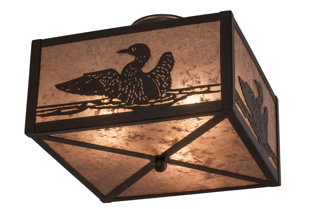 Listen to the eerie calls of the Loon echo across clear lakes of the wilderness. This charming wildlife design captures a Loon swimming across a country lake. The decorative accents and hardware are highlighted in a Timeless Bronze finish on an alluring Silver Mica shade. This nature inspired fixture is handcrafted by Meyda artisans in our manufacturing facility at the foothills of New York's Adirondack Mountains. Custom options include various sizes; designs; colors and dimmable energy efficient lamping. The fixture is UL and cUL listed.