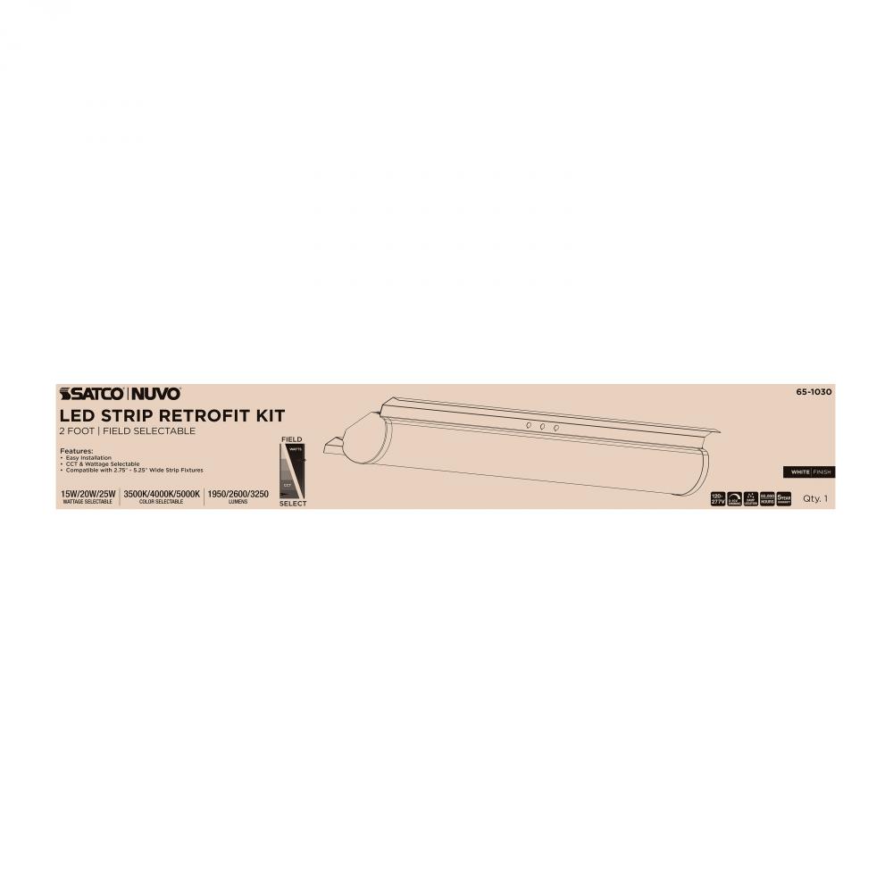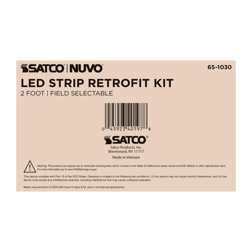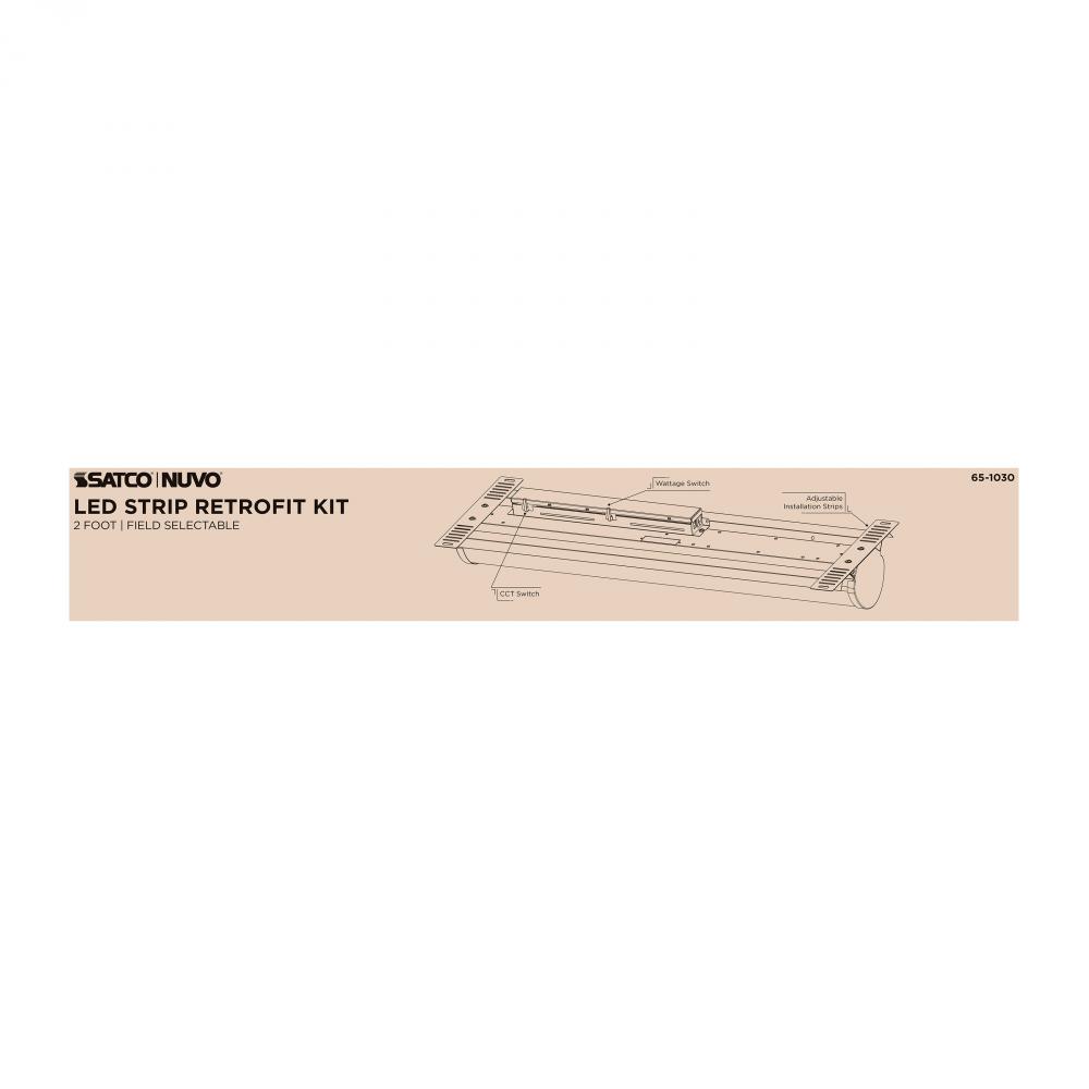 SATCO NUVO's LED Strip Retrofit Kit, 65-1030, is an energy-efficient upgrade for existing fluorescent fixtures. Designed with adjustable mounting strips to fit housings 2.75"–5.25" wide, this 2ft kit features field-selectable CCT and wattage,