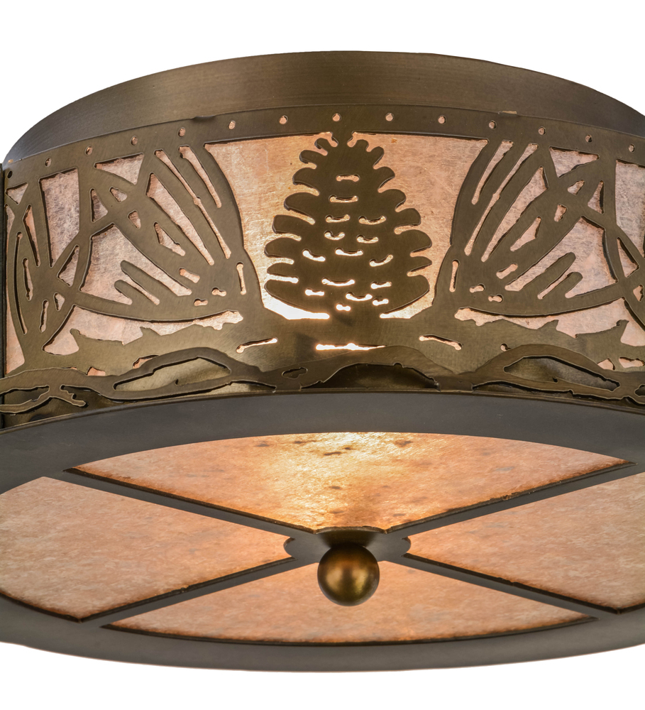 Mountain pinecones and pine needles are depicted on this unique nature inspired pendant. Rustic charm comes alive with soft warm ambient light through Silver Mica which is accented by hardware featured in an Antique Copper finish. The fixture is perfect for hallways; entryways; foyers and rooms where you want to make a design statement. Mountain Pine is handcrafted by Meyda artisans in our manufacturing facility; at the foothills of the Adirondack Mountains in Upstate New York.