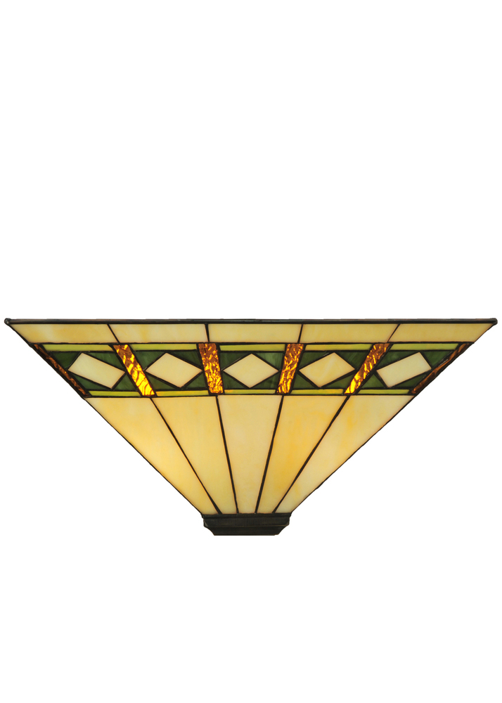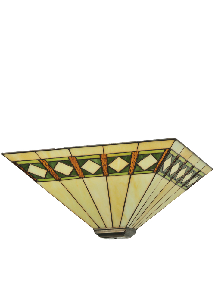 Simple clean lines and geometric shapes are the hallmark of the Mission style. This sleek Bisque Beige stained glass shade features a simple; elegant diamond pattern in Beige accented with Amber; Jade and Peridot borders. The shade is created with the famous Meyda Tiffany copperfoil construction technique. Pairs well with a base to create a table or floor lamp; or match with hardware to build a ceiling or wall fixture. The Diamond Band Mission Shade is included in our American designed; handcrafted Mission Lighting Collection. Each shade is a unique work of art with color variations based on natural ingredients inherent in the glass. Contact us if color matching is critical when ordering multiple items.