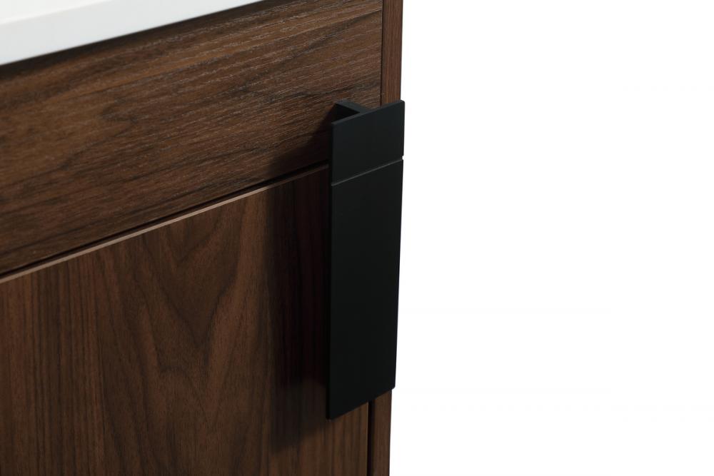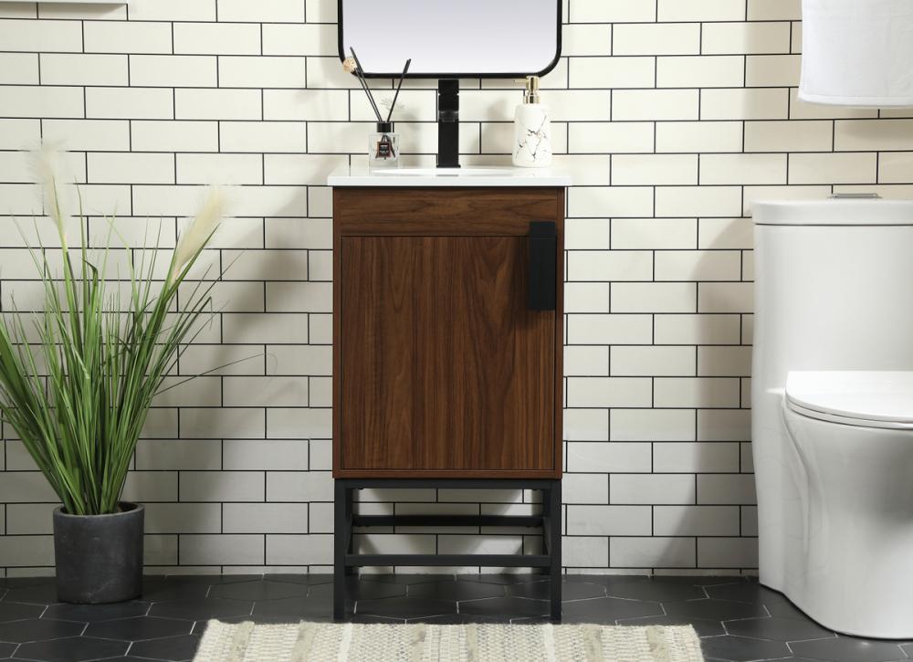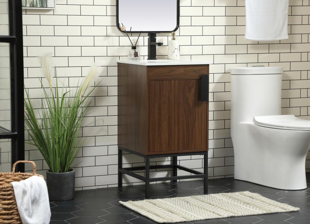 This vanity is a sleek-looking piece of bathroom furniture that is easy to incorporate into your design scheme. The cabinet features a smooth door panel with an oversized steel handle and soft close hinges provide ample room for accessories. Constructed of engineered wood, the powder-coated metal rod legs are an urban industrial look that we love. Minor assembly of the metal legs needed to get this vanity up and running.