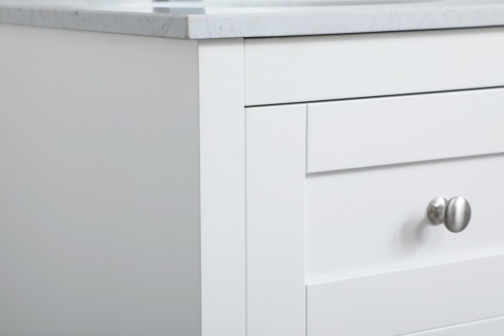 The refined simplicity of this 18" white finish vanity creates a peaceful, yet stylish, atmosphere. Its traditional modernity adds a mature beauty that will elevate any bathroom or powder room--the Calacatta engineered marble counter top adds refined luxe while the brushed nickel handle bars open the Single cabinet door, revealing ample storage space to store and hide away an assortment of bathroom essentials. Whether your home is large or small, this vanity will surely fit in well.