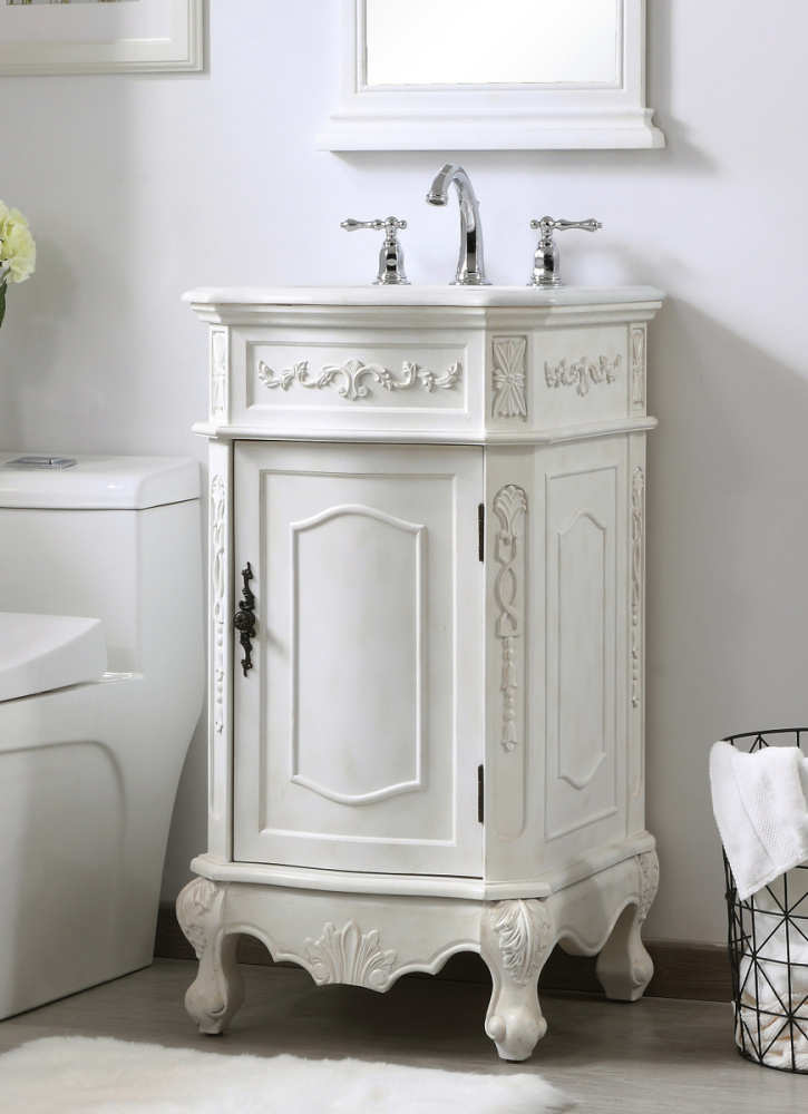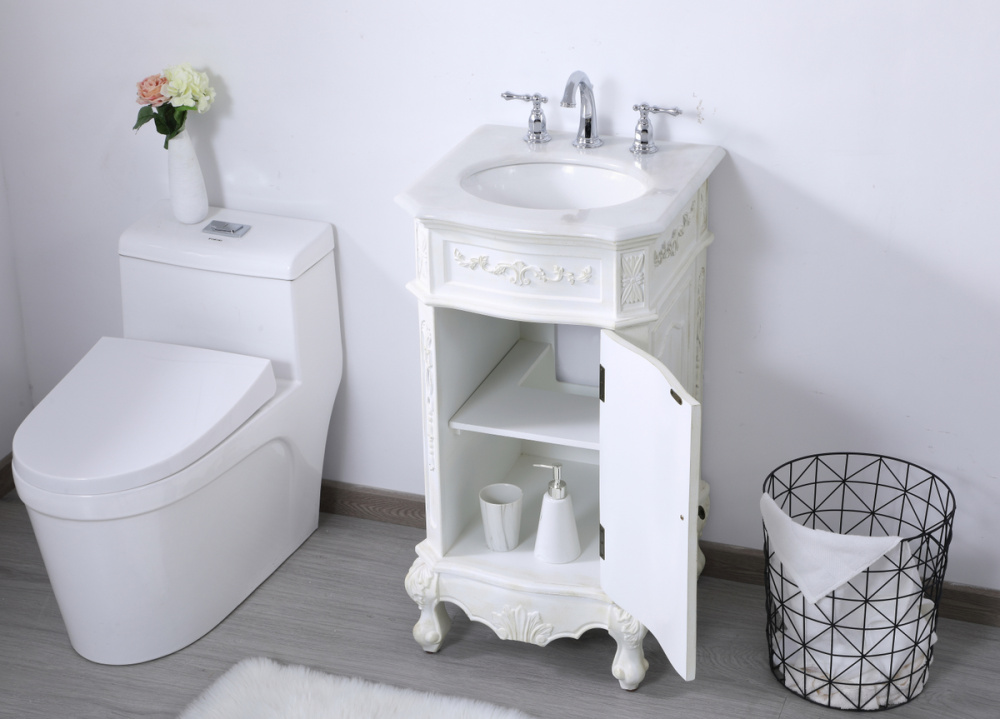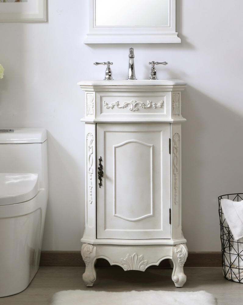 19 inch Single Bathroom vanity in antique white with ivory white engineered marble
