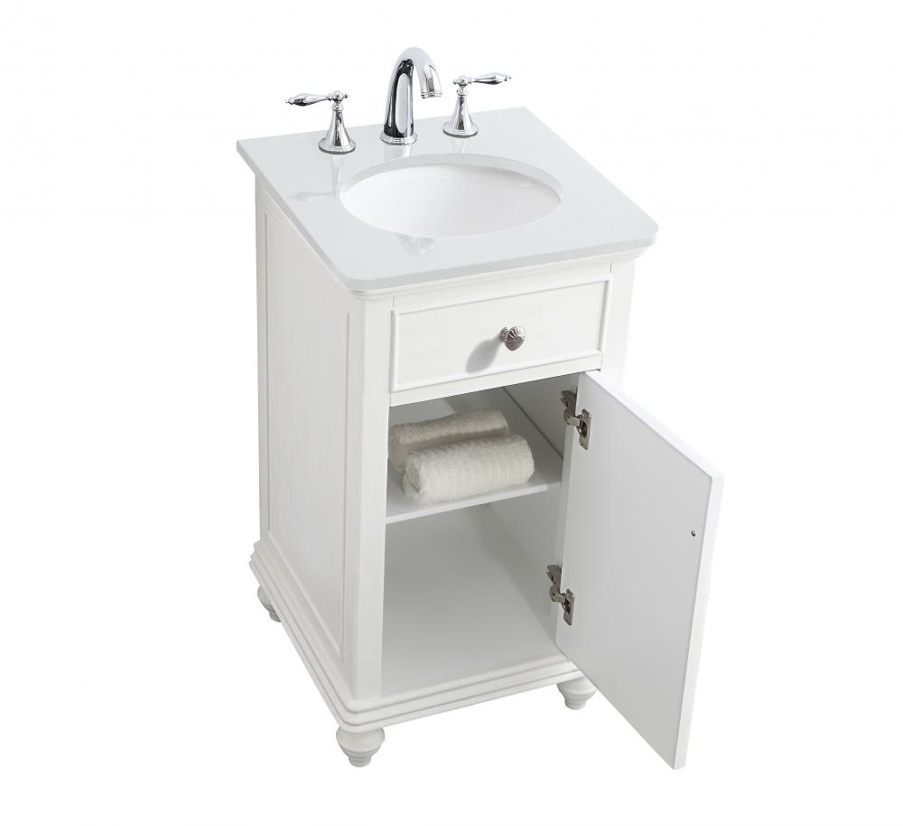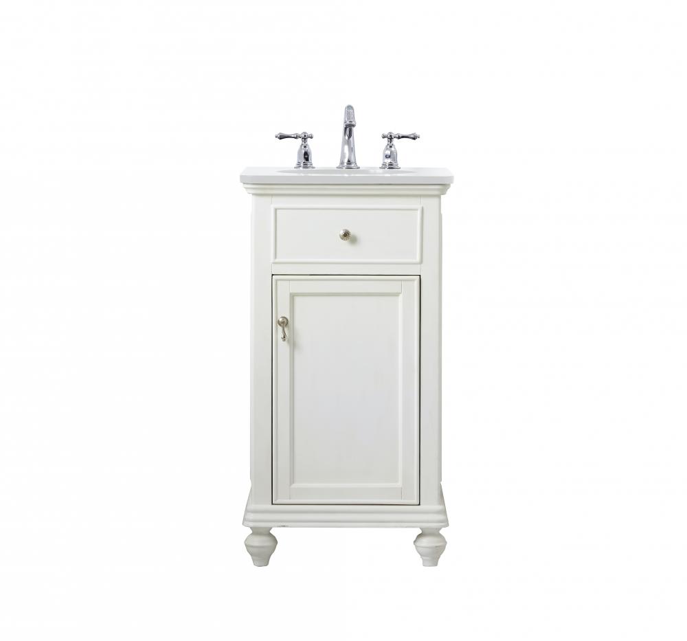 19 inch Single Bathroom vanity in antique white with ivory white engineered marble