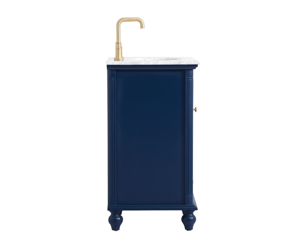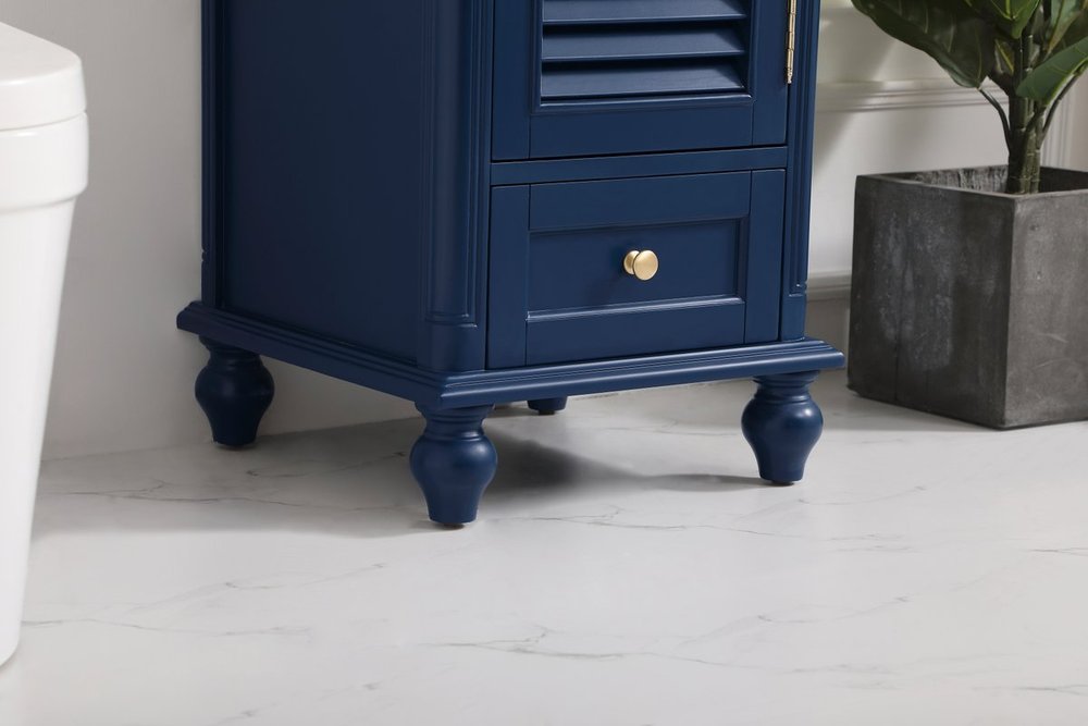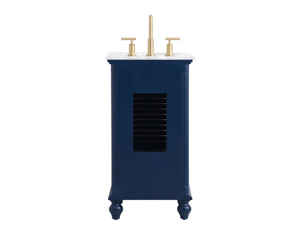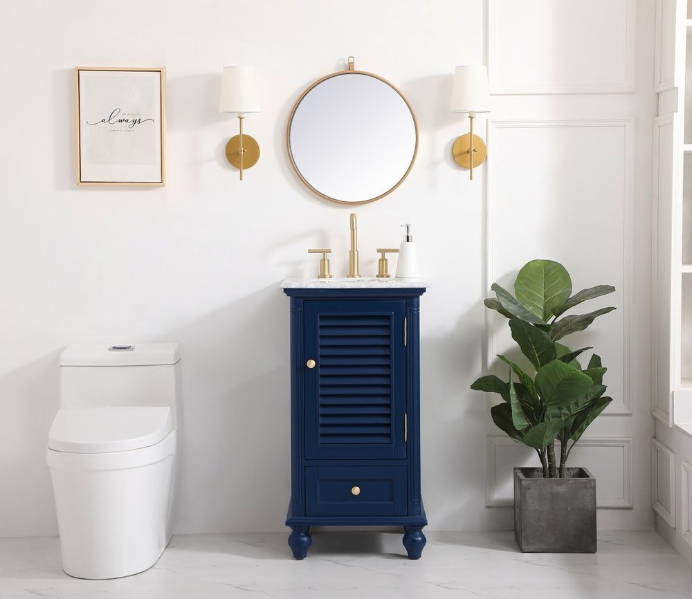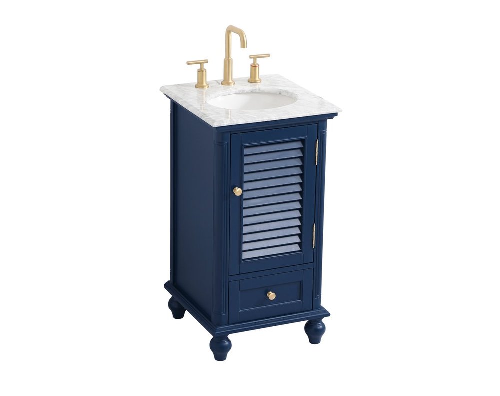 A small space doesn't mean you have to settle for less. The Rhodes collection compact vanity will add lovely sophistication and complement any small bathroom or powder room, while utilizing its charm and function to provide you with ample storage spaces. Metal round knobs gently adorn the shuttered cabinet door and drawer at the base, allowing for you to store away your bathroom essentials. The Carrara white marble countertop, porcelain undermount sink, dignified subtle engravings on the side edges, and rounded legs all come together to create contemporary beauty. Work with your space, and design a beautiful room, no matter the size.