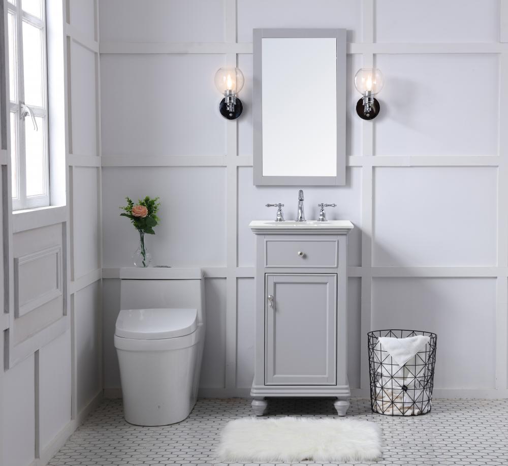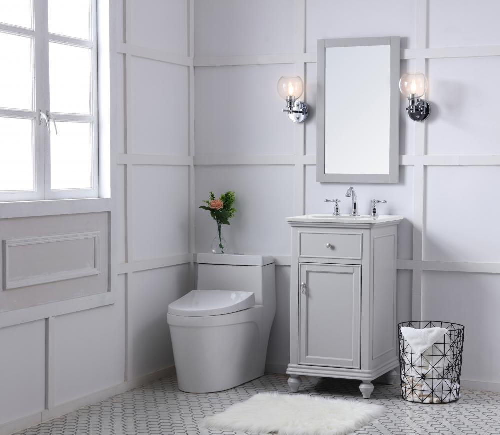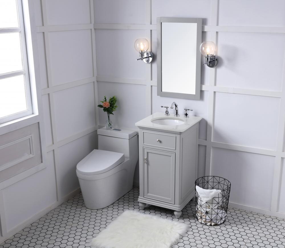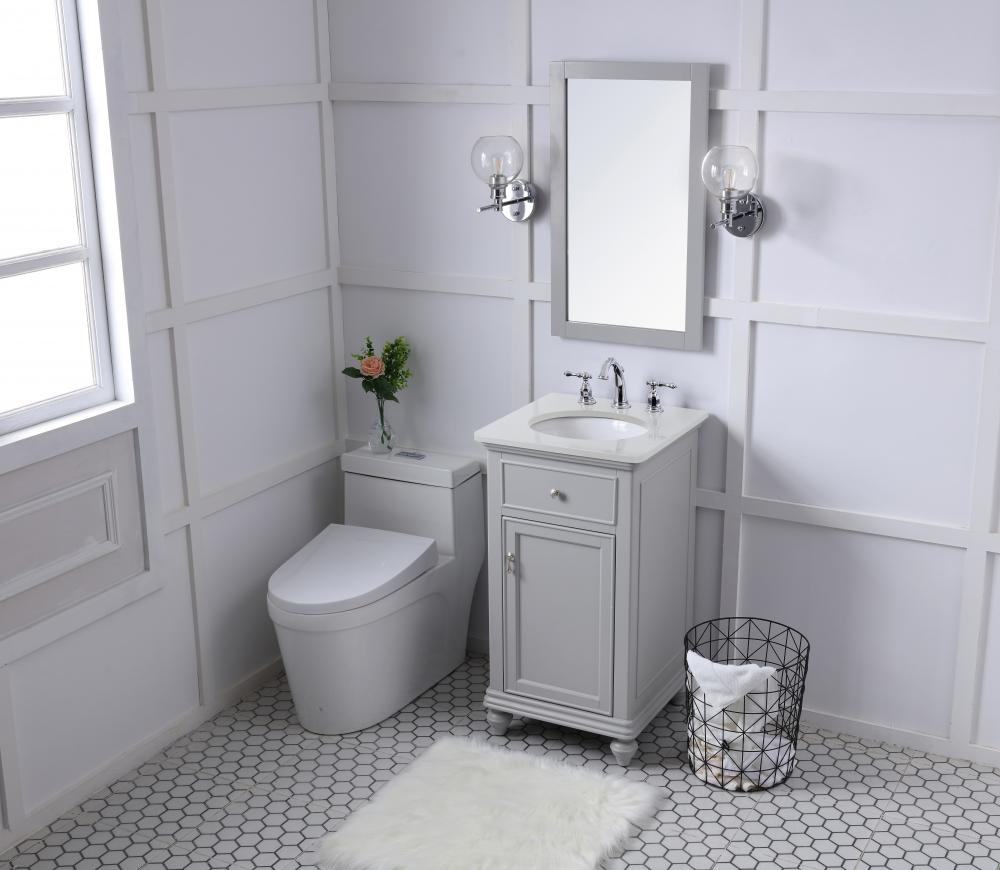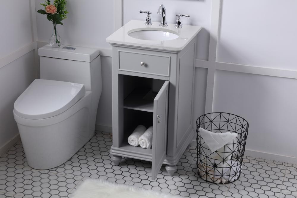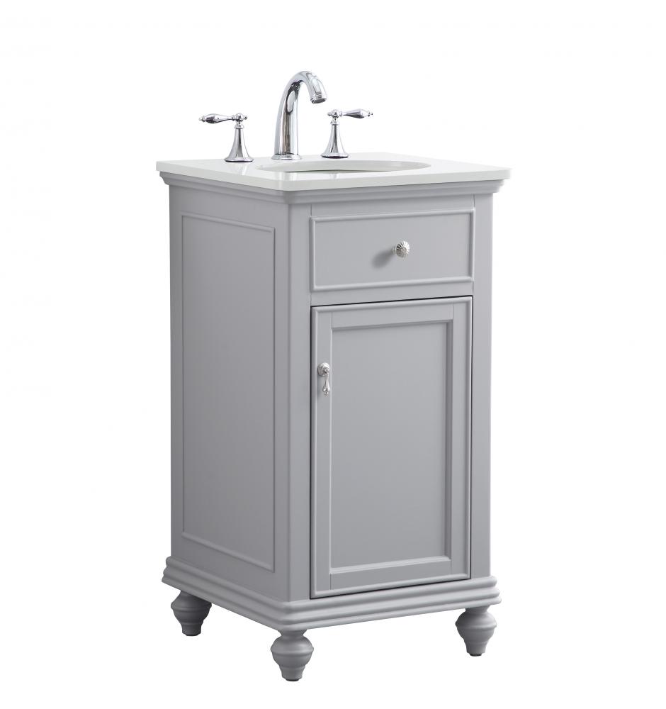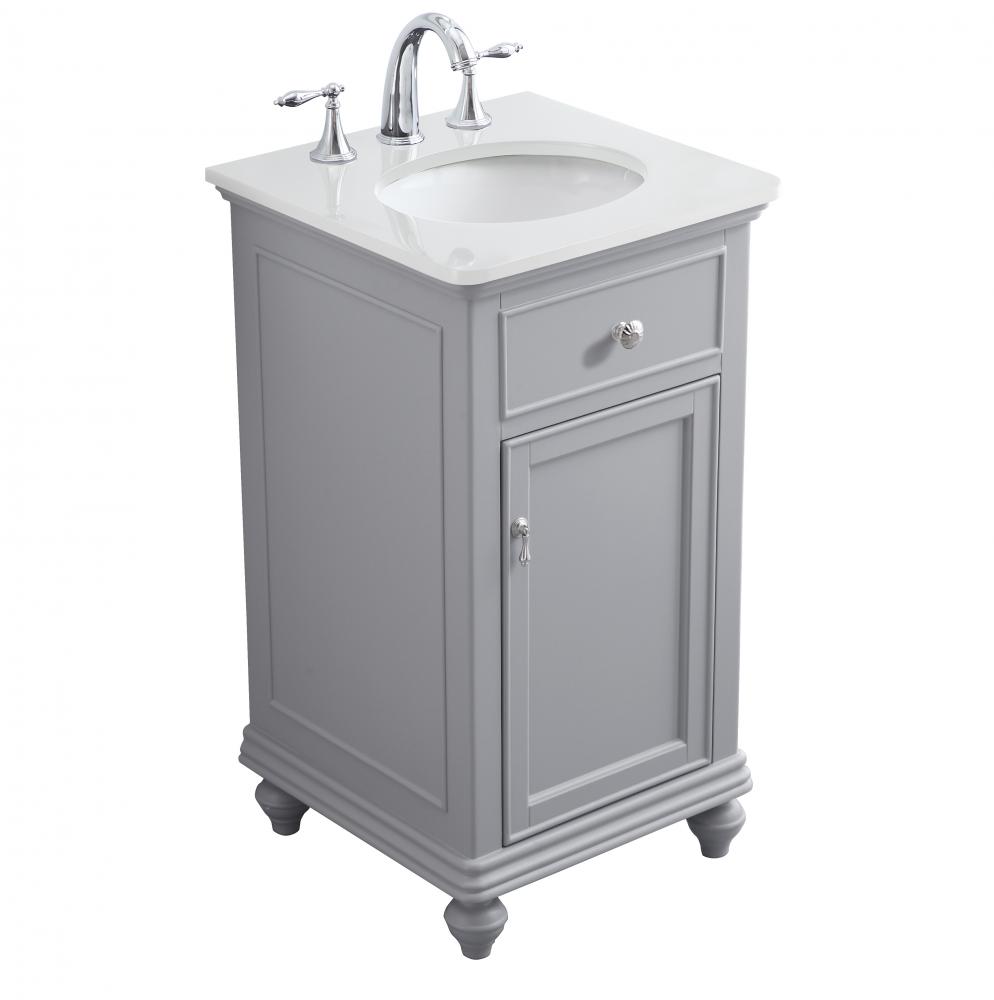 19 inch Single Bathroom vanity in light grey with ivory white engineered marble