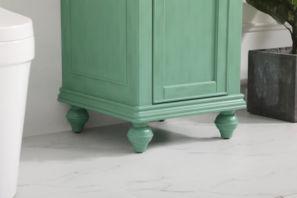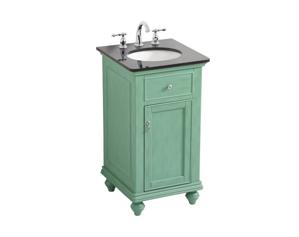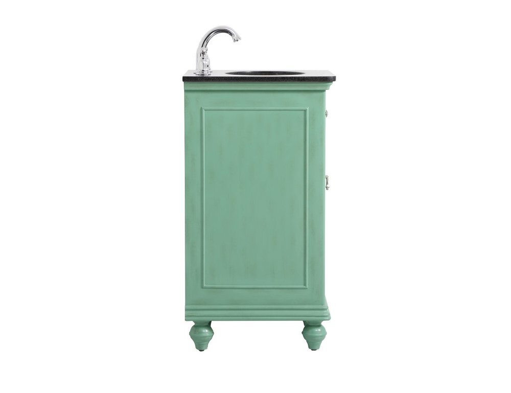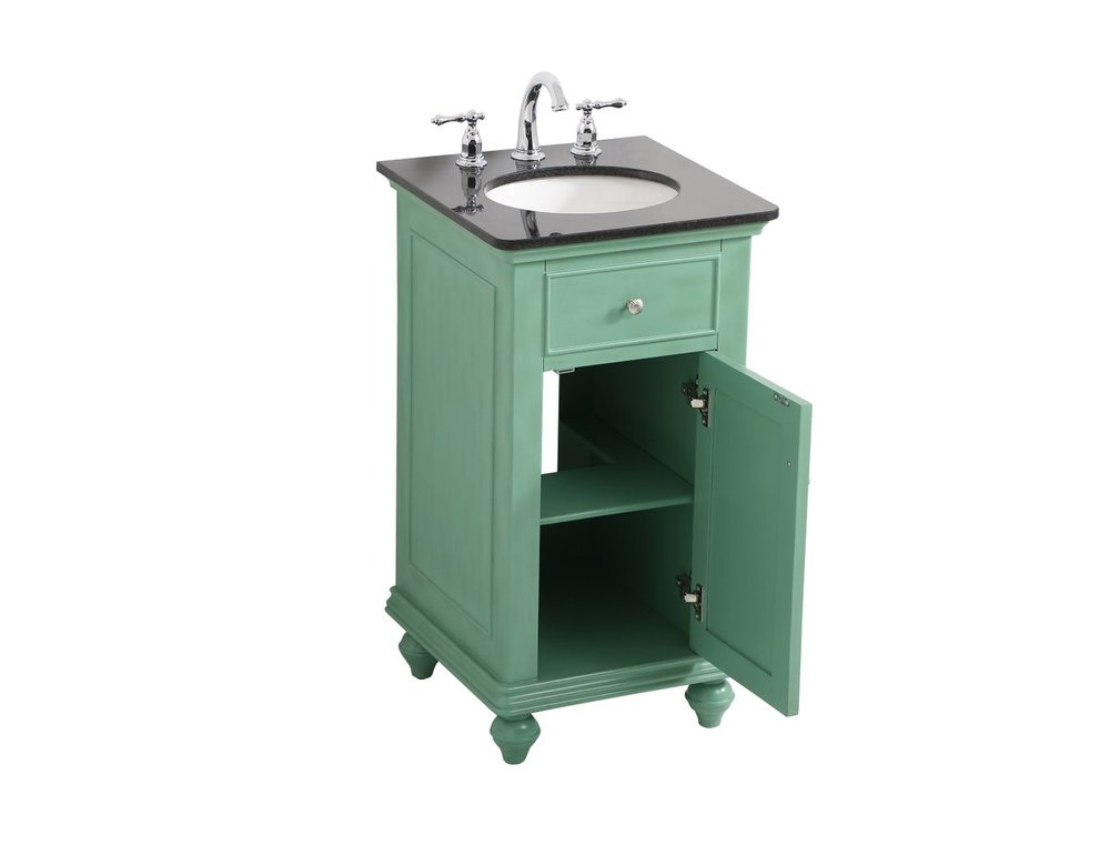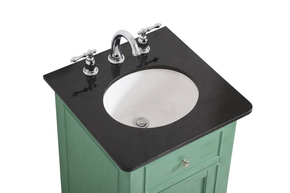 Create a refined and relaxing bath space with this contemporary design vanity, presenting its simplicity and clean straight lines in a minimalist appeal. This vanity, crafted of solid poplar wood and engineered wood panels, provides ample storage within its soft-close cabinet door, accentuated with metal hardware. Rounding out the design is a black granite top with a white porcelain under-mount oval sink. Convenient access for plumbing installation with cut out back panel. Hand painted finish with distressing application to provide an antique effect.