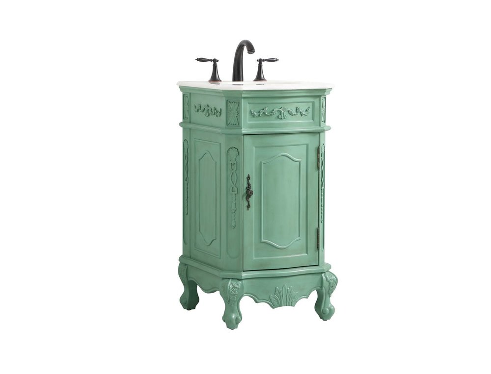 Elegant VF10119AW-VW - 19 inch Single Bathroom vanity in antique white with ivory white engineered marble