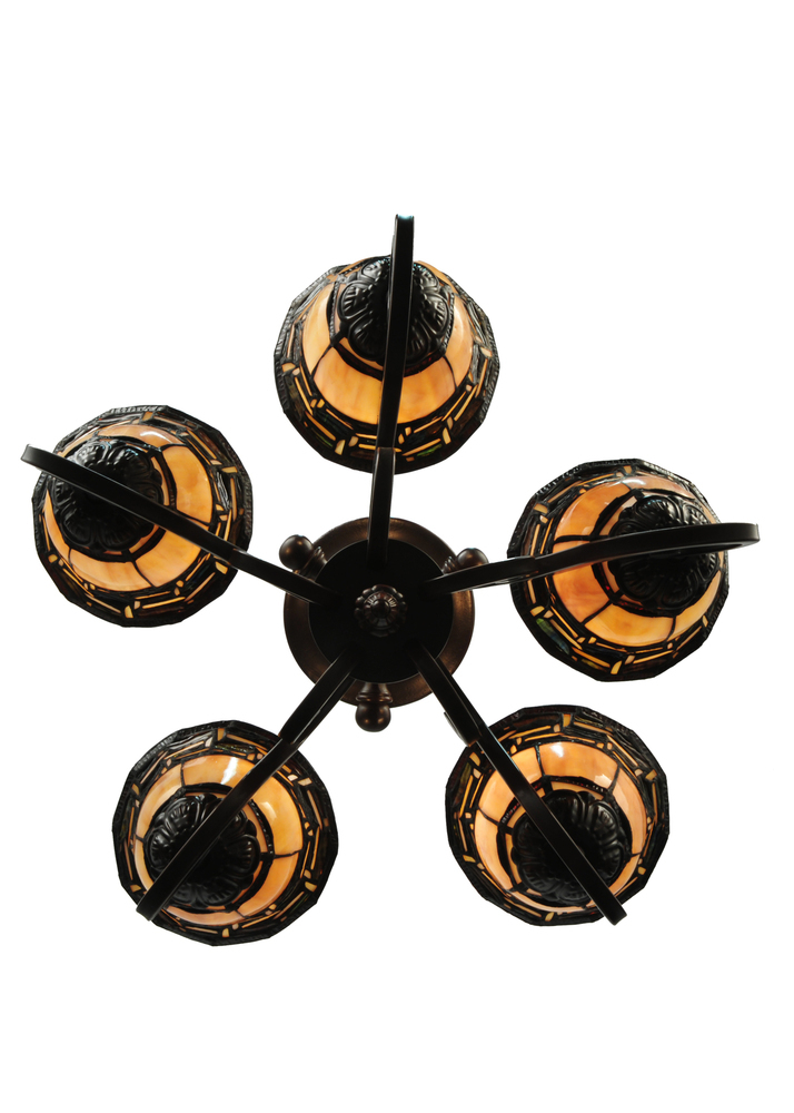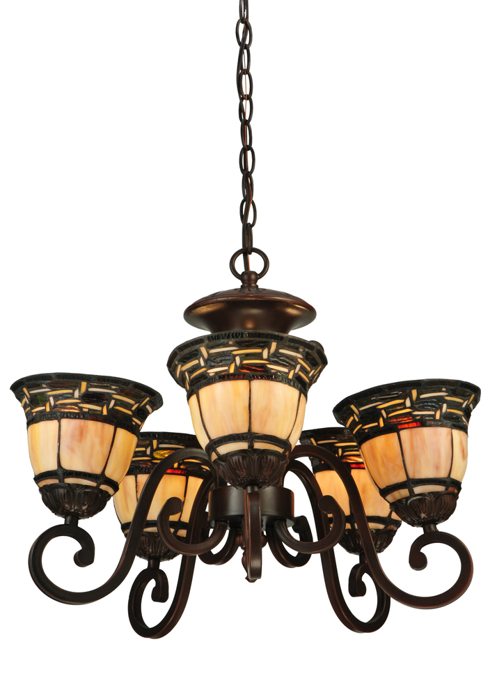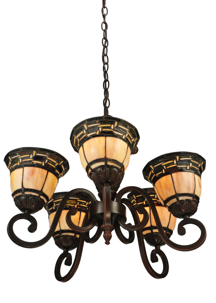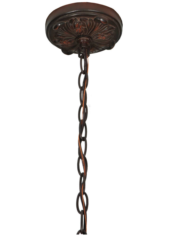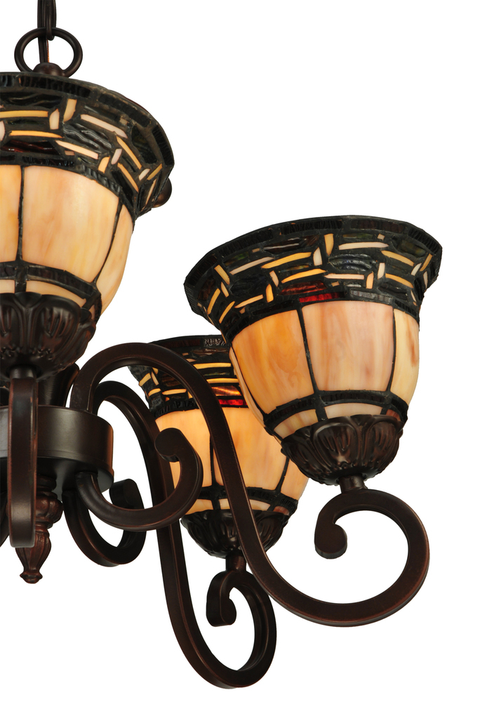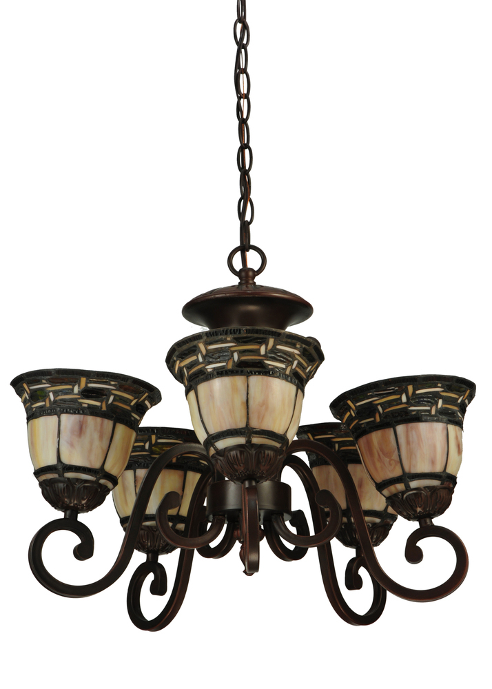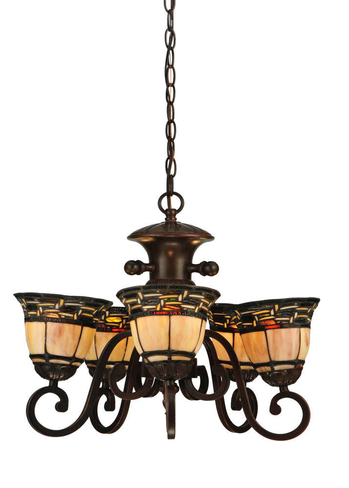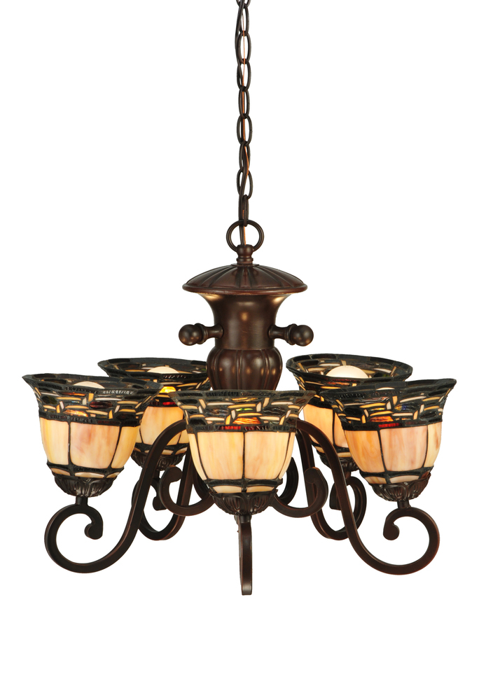 Named for the Greek word for light; Ilona will stir conversations among family and friends with a dramatic Honey and Beige colored knotwork design on Wispy Blue/Green Rippled glass. The chandelier's background includes Beige; Mauve and Purple art glass while Root Beer colored glass borders enhance the beauty of this exquisite art glass shade; which is created using Meyda Tiffany's famous copperfoil construction process. The hardware is finished in a warm Mahogany Bronze.