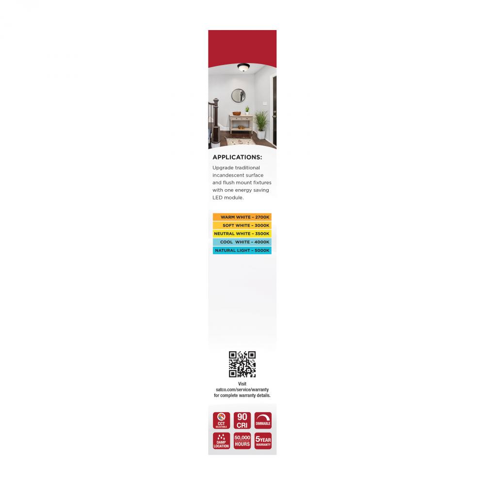 Some things never go out of style – Upgrade traditional surface mount fixtures with SATCO NUVO's S29781 Retrofit Surface Mount Module. Enjoy the energy and maintenance savings while enhancing lighting with a crisp 90 CRI LED module. Choose from five color temperatures for the desired warm to cool illumination, and connect to a wall dimmer for additional customization and control.
