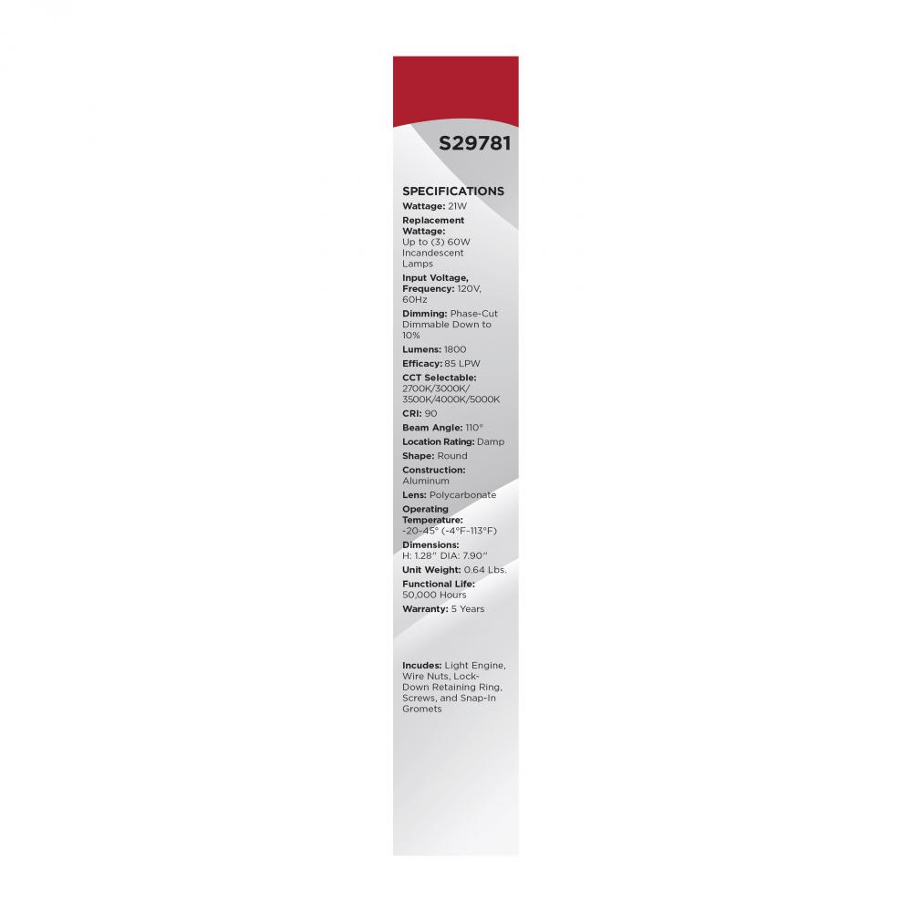 21 Watt LED Light Engine; 27K/30K/35K/40K/50K CCT Selectable; Clear; 120 Volt