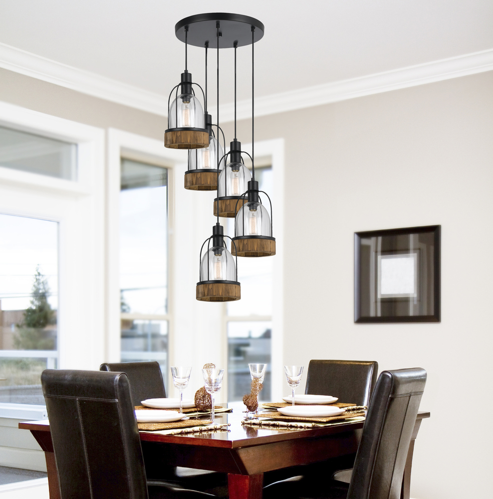 84" Inch Tall Glass Pendant in Dark Bronze Wood Finish