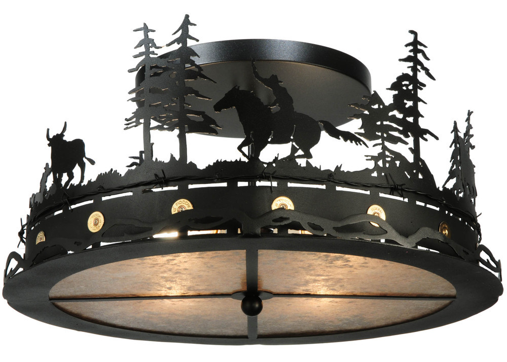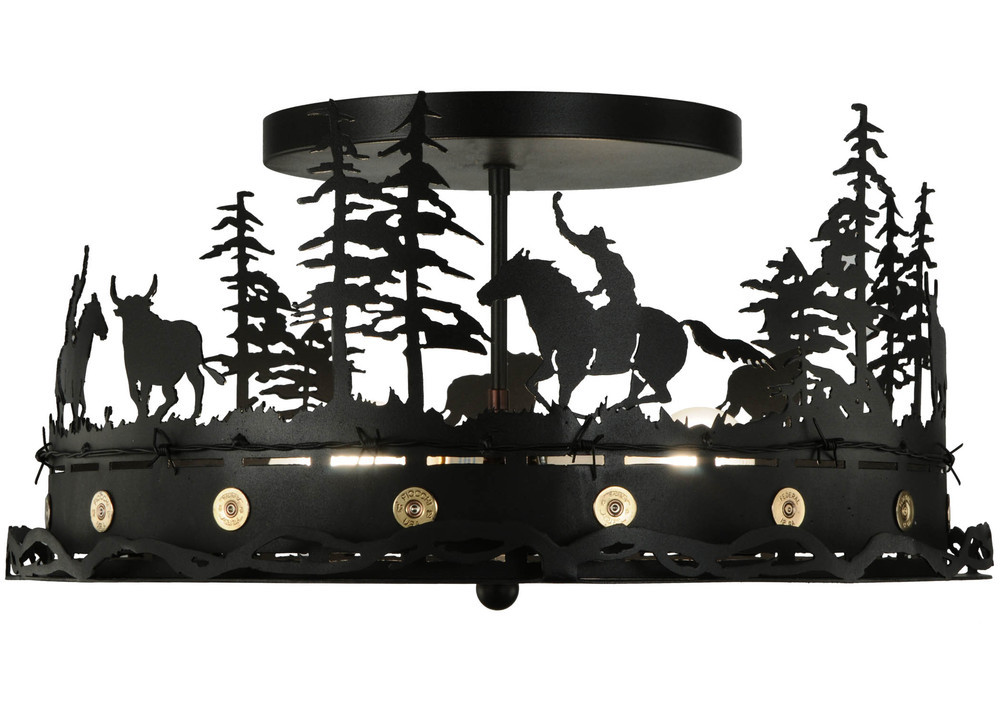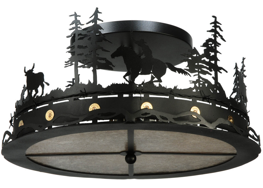 22"W Cowboy & Steer Flushmount