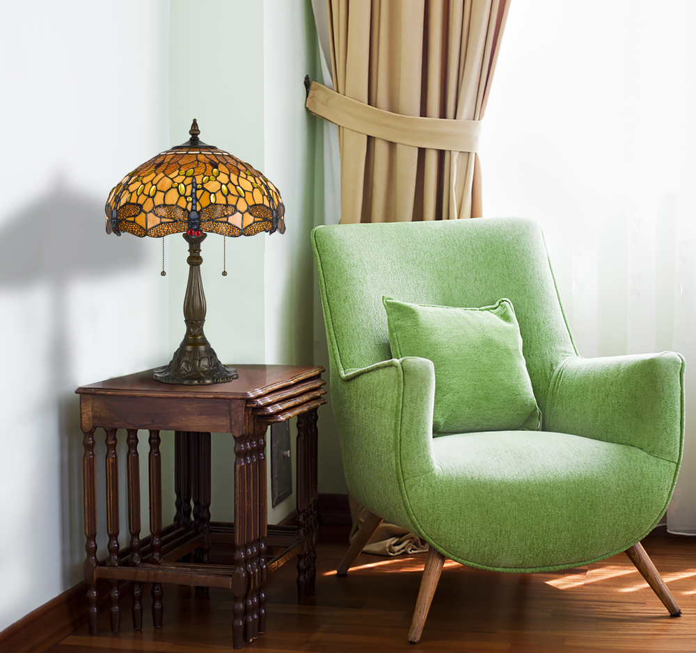 60W X 2 Tiffany Table Lamp with Pull Chain Switch with Metal Lamp Body