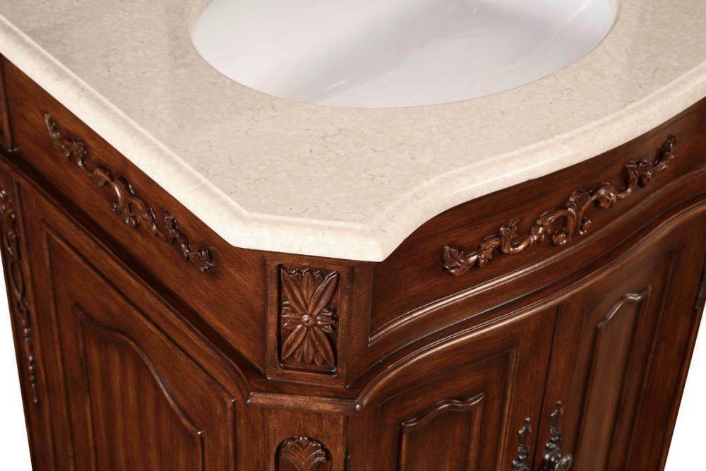 The Danville collection is finely hand crafted vanities. The vanity is a Single sink marbled top cabinet with a modest storage area underneath. Expert workmanship is evident in the detailed etchings from top to bottom. Available in your choice of antique white, antique beige, white or brown. Hardware not included.