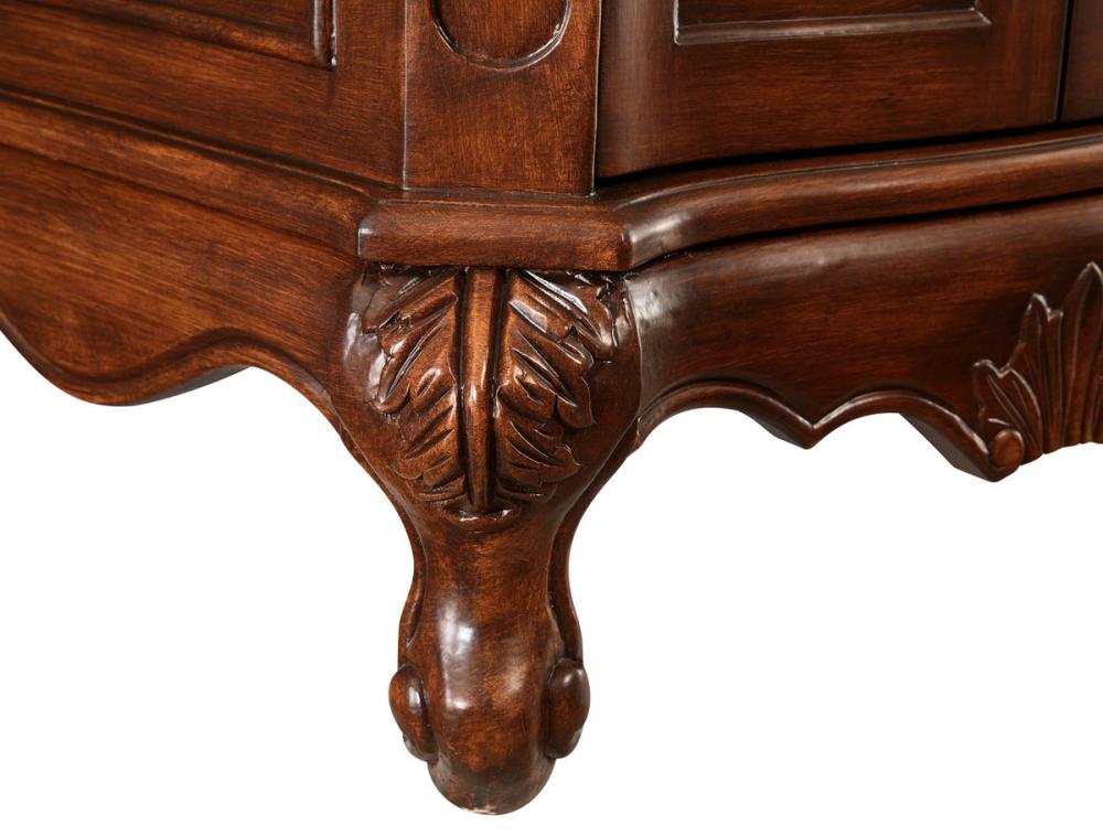 Stylishly carved solid wood French scroll feet, as well as antique bronze finish door knobs. A truly rich statement of luxury! Measurements: W24” x D21” x H36”.