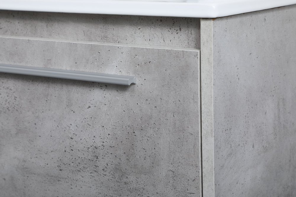 Save space and make your bathroom appear bigger with this 24" floating vanity in a concrete grey finish. Its minimal design will have you in awe, while its clean lines will leave your room feeling fresh and uncluttered. The Single u-drawer pulls out for storage while the open space below allows you to place extra towels or various other essentials.