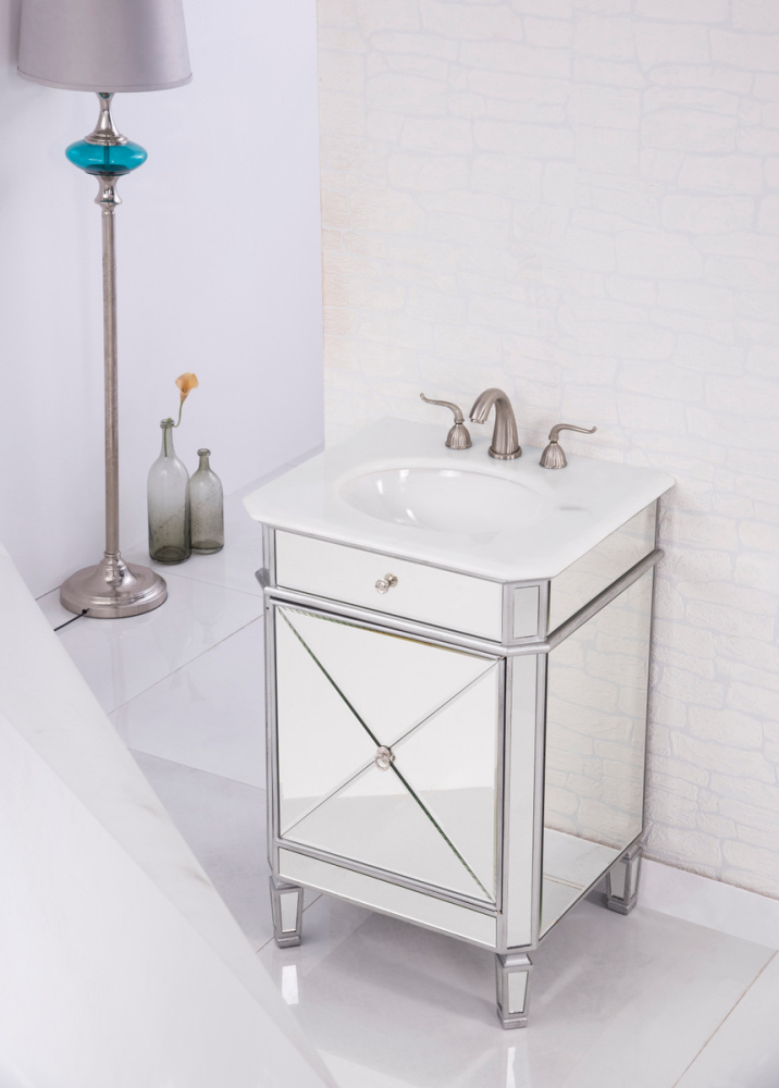 24 inch Single Bathroom mirrored vanity with ivory white engineered marble