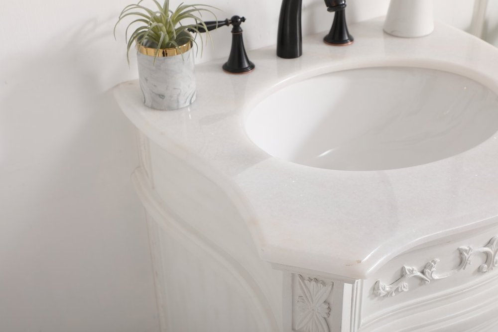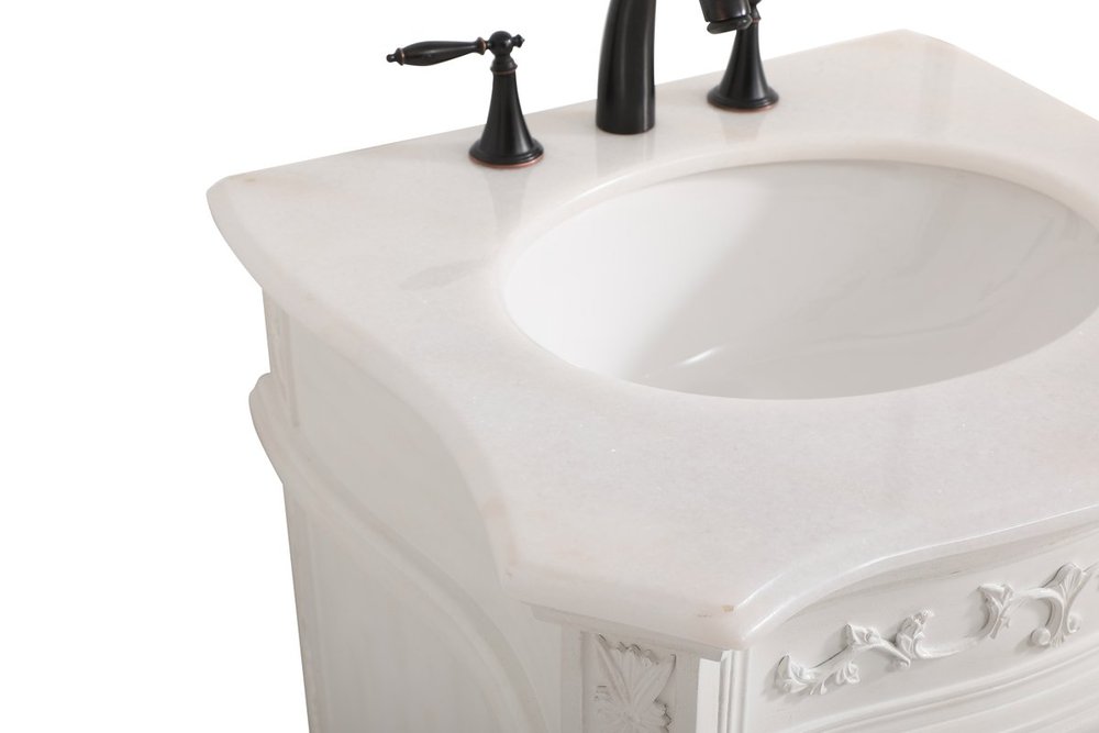 Comes with an off-white marble top with slight brown veining and bevel edge design, please note that due to the natural characteristics of the stone, the color and/or pattern of each countertop may vary from the pictures.
