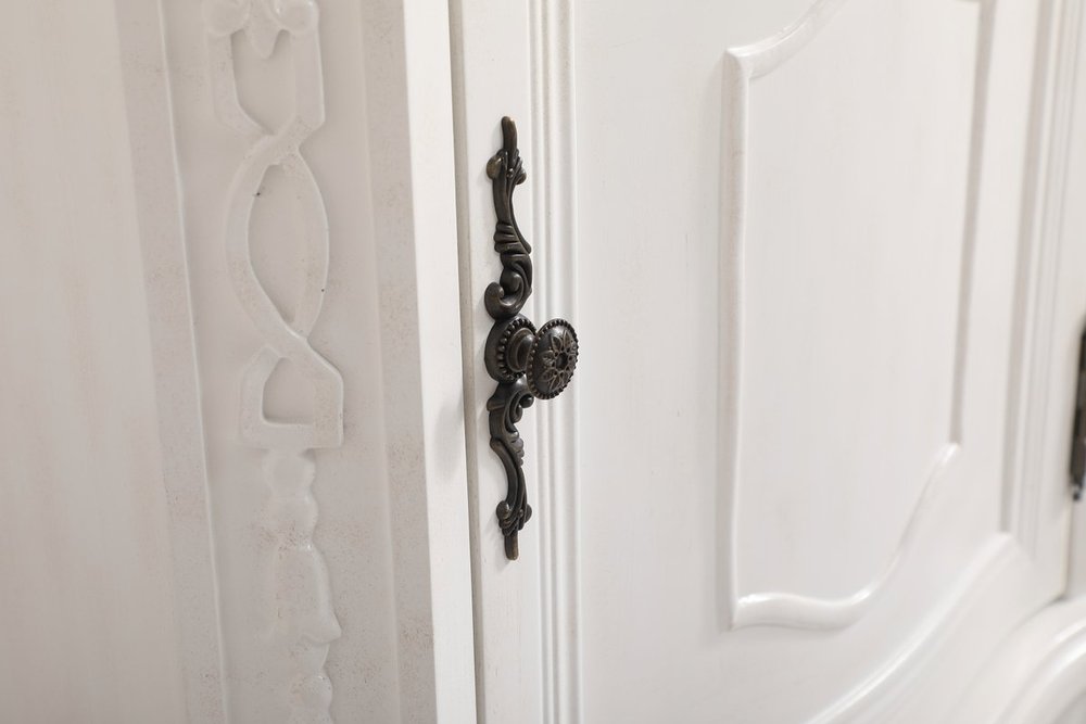 Create a refined and relaxing bath space with this traditional design vanity, presenting its ornate lines. This vanity, crafted of solid poplar wood and engineered wood panels, provides ample storage within its soft-close cabinet door, accentuated with metal hardware. Rounding out the design is an off-white marble with some brown veining in the stone. Comes with a white porcelain under-mount oval sink. Ships fully assembled.