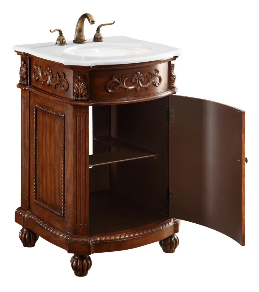 This superb balance of timeless tradition and opulent beauty in a engineered marble-topped vanity will certainly enhance the aesthetics of any home or office bathroom! Featuring an ivory white durable engineered marble countertop complimenting the hand painted cabinet with a delicate carved floral design, stands on stylishly carved solid wood French scroll feet. Don't let the design fool you, the engineered marble countertop and porcelain undermount sink allows for space to get ready, while the antique bronze hardware allows you to discover storage spaces with ease. You and your guests will marvel at this vanity that will both store away your bathroom essentials and enhance the aesthetics of your room.
