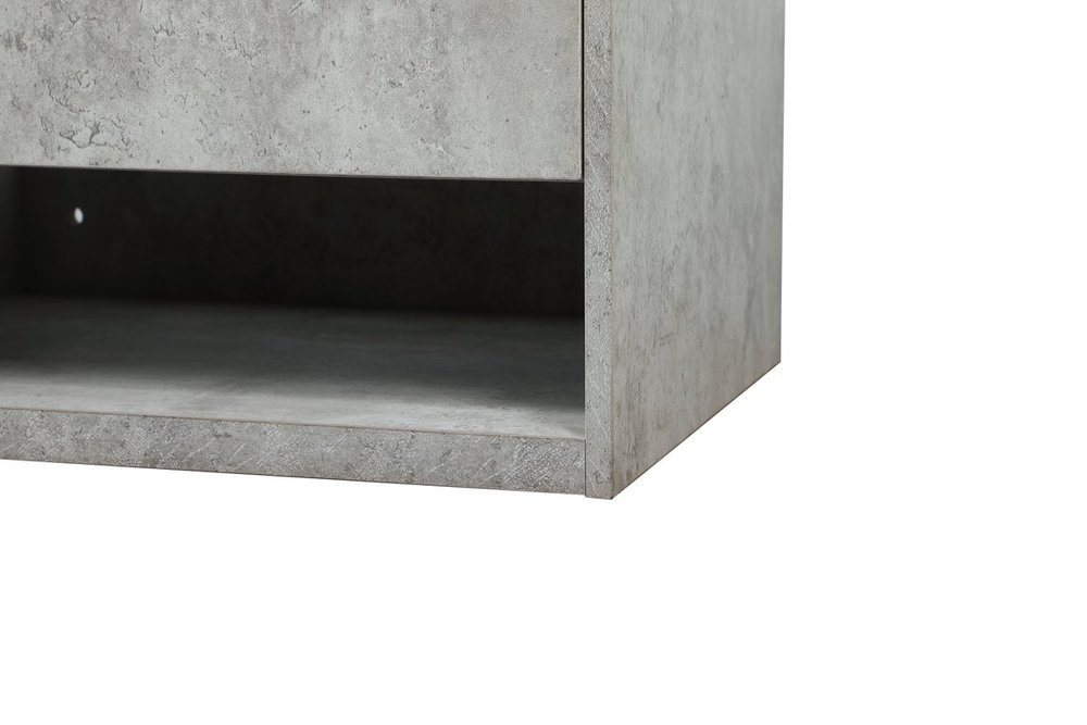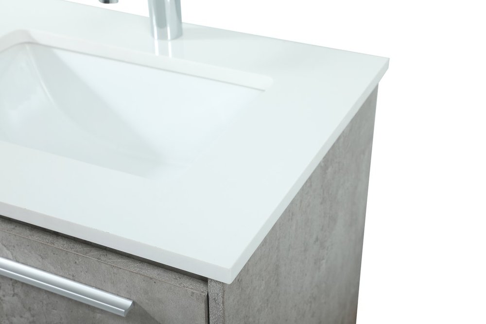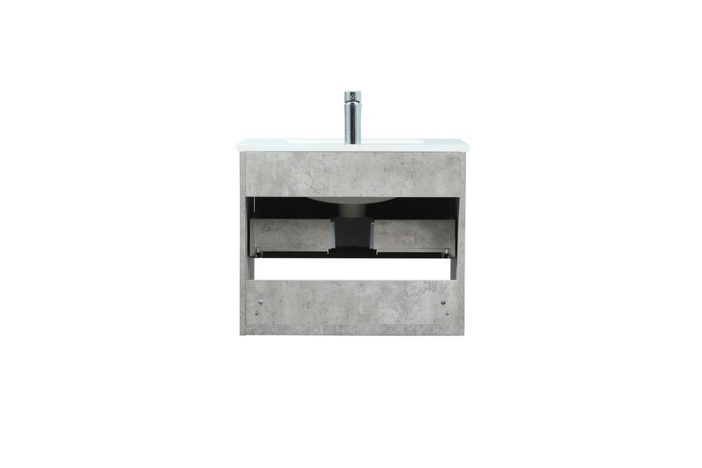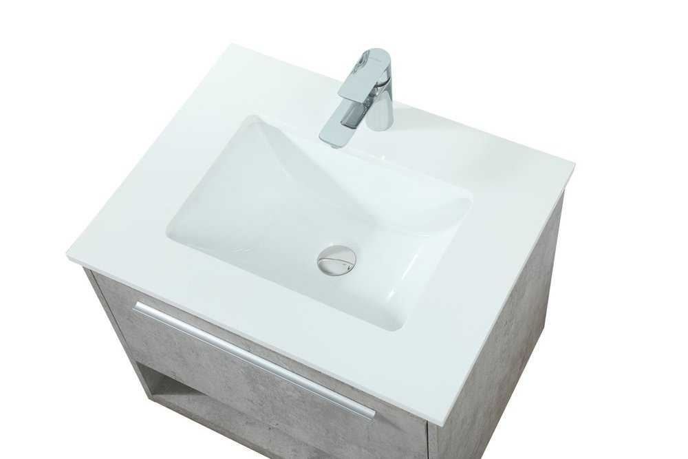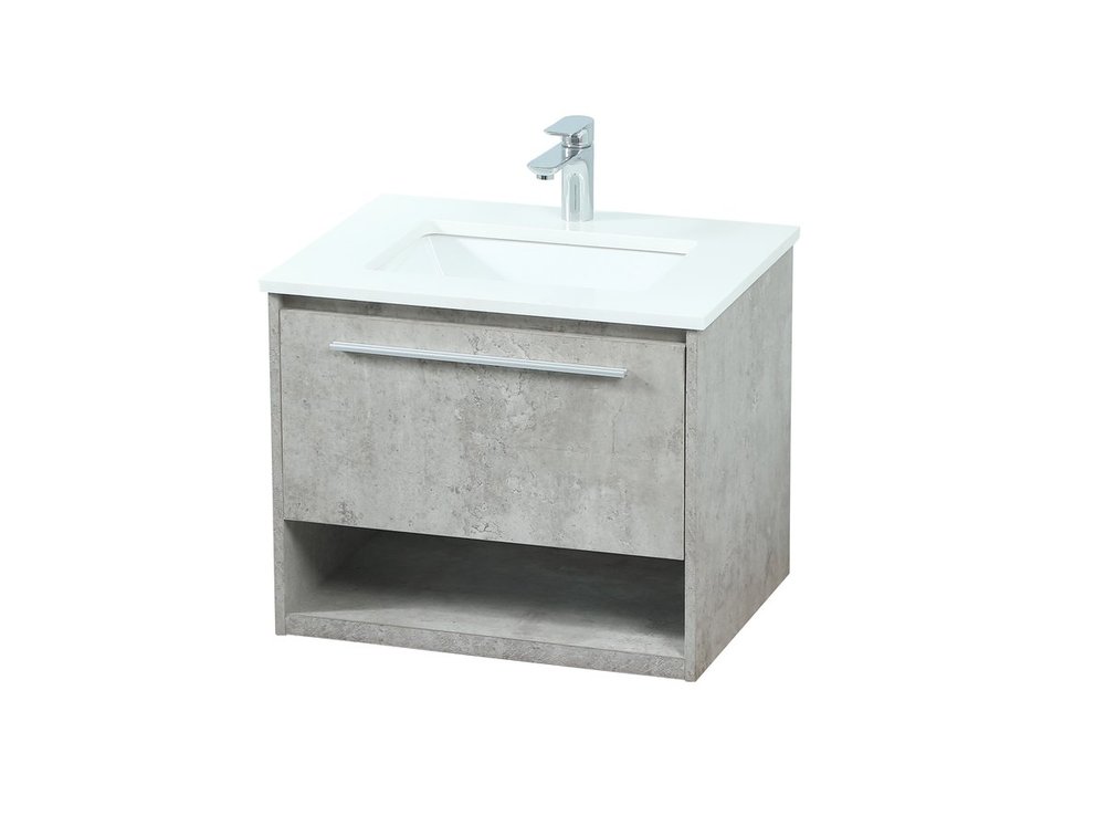 Save space and make your bathroom appear bigger with this floating vanity. Its minimal design will have you in awe, while its clean lines will leave your room feeling fresh and uncluttered. The Single u-drawer pulls out for storage while the open space below allows you to place extra towels or various other essentials. The ivory white engineered marble counter top with porcelain sink adds refined luxe while the aluminum barpull style handle adorn the vanity face.