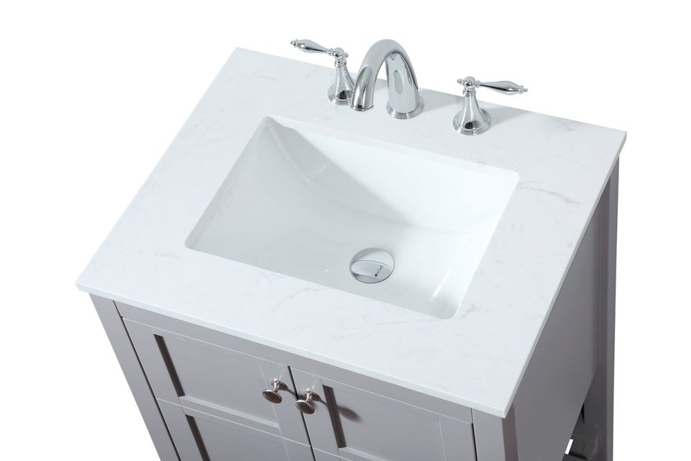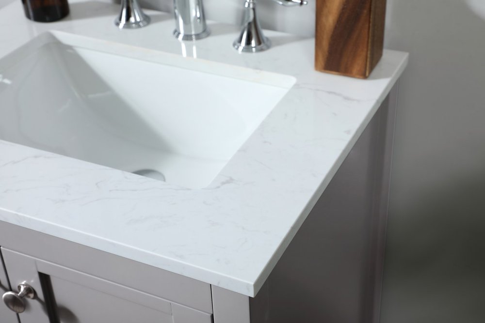 Comes with an undermount porcelain sink and a durable calacatta engineered marble stone top