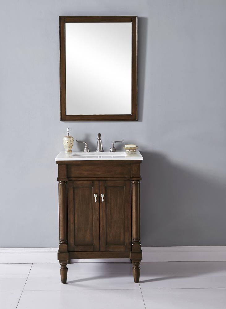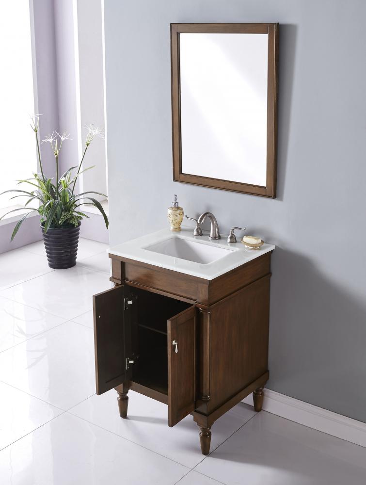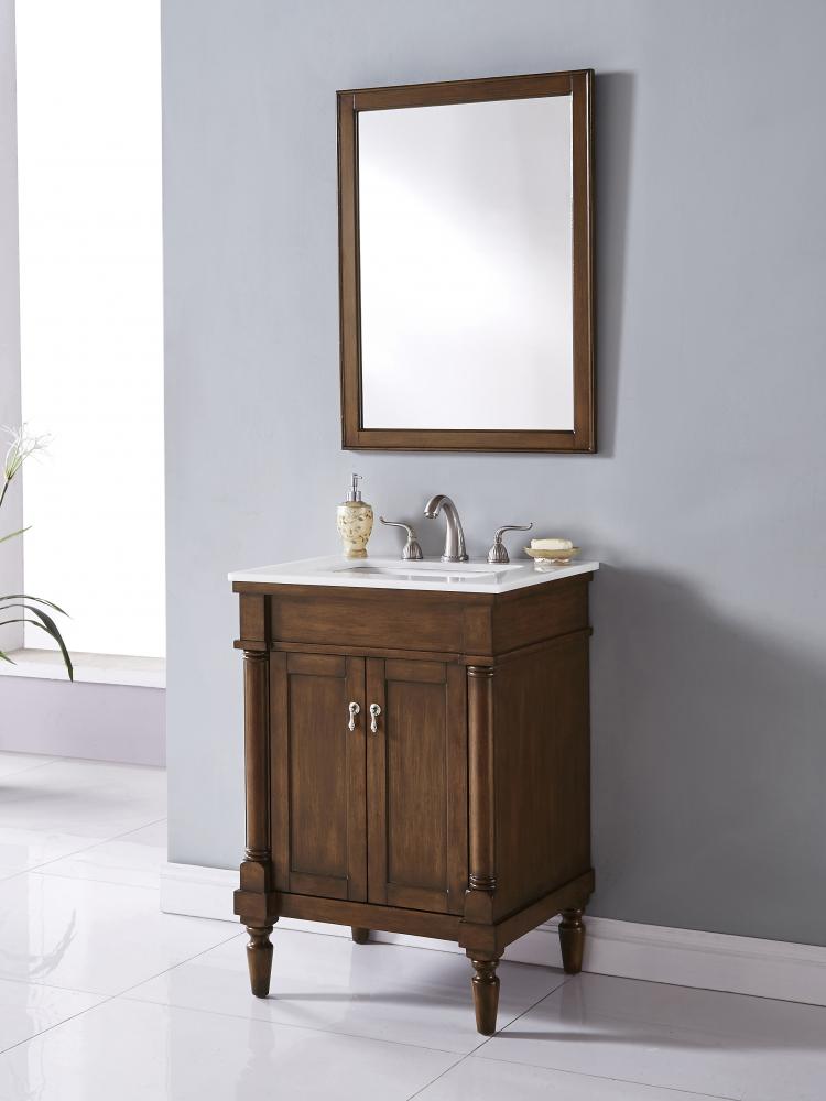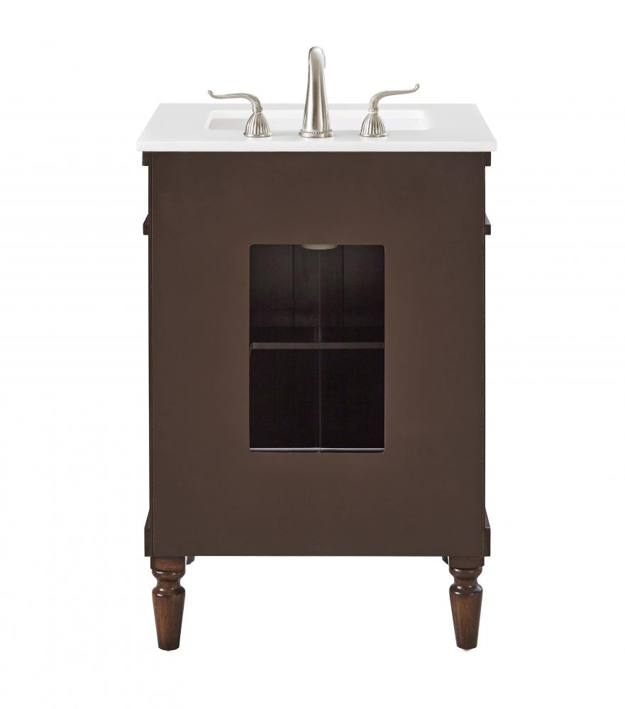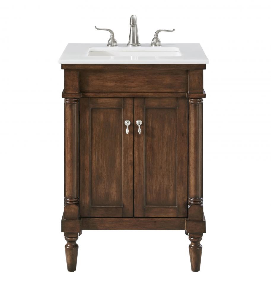 24 inch Single Bathroom vanity in Walnut with ivory white engineered marble