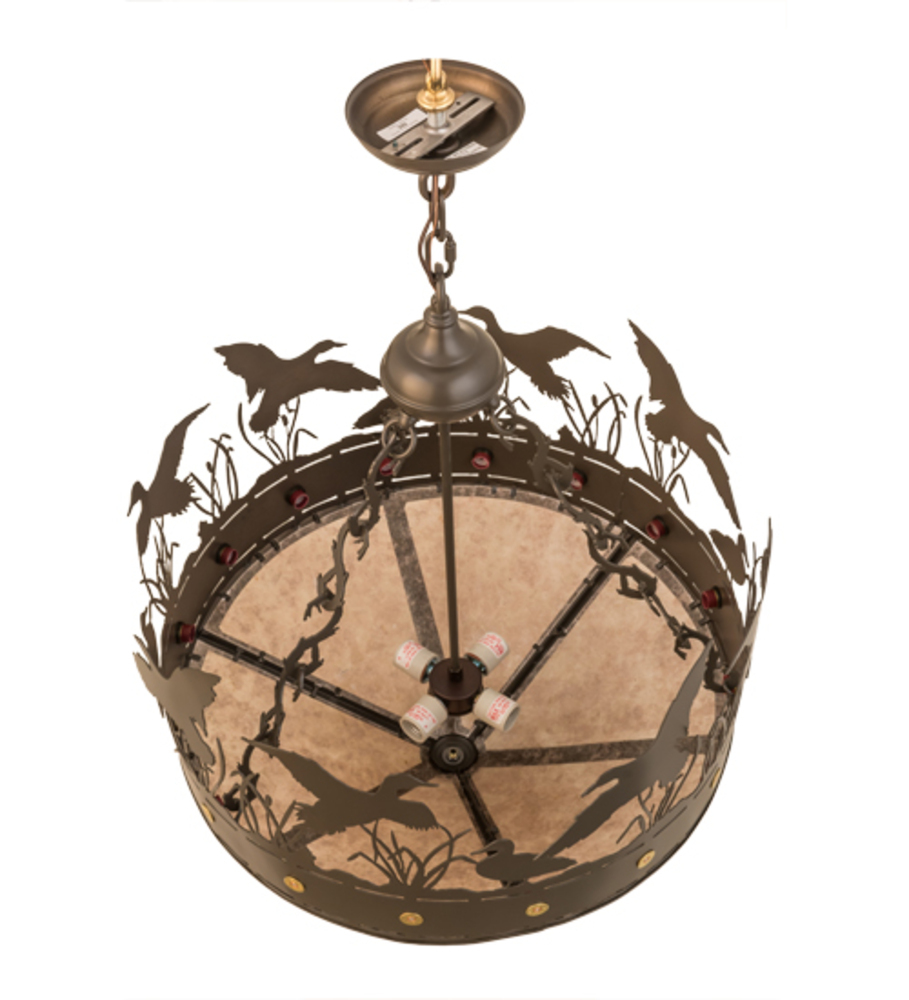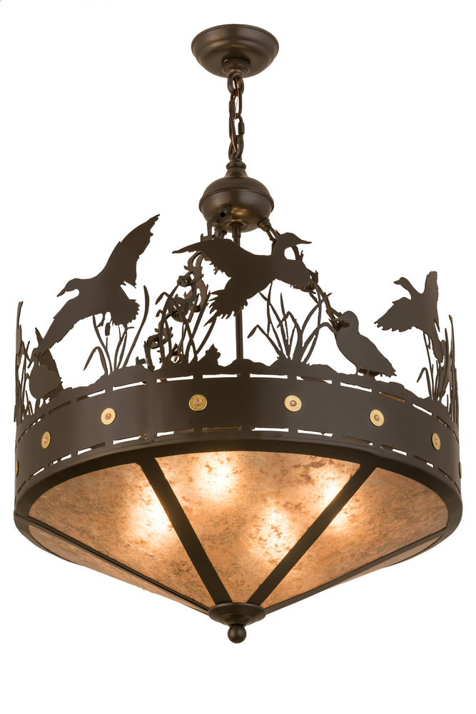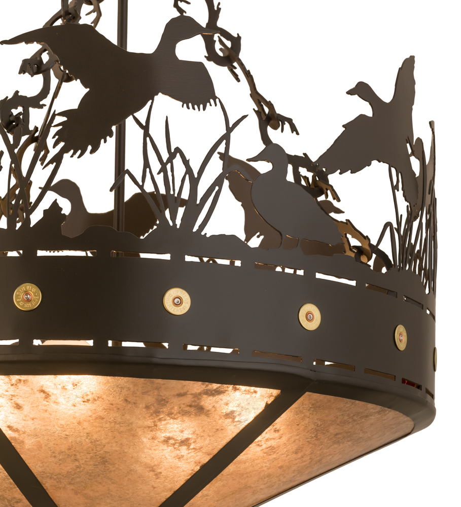 An authentic and mesmerizing wildlife image comes to light beautifully. Soaring; standing and frolicking about the marshes and reeds among the wetlands; a flock of these aquatic birds is captured delightfully in the natural habitat. Timeless Bronze finished accents and a frame with brass accents crown stunning Silver Mica which projects warm ambient light. Handcrafted at the foothills of the Adirondack Mountains in the USA; this fixture is available in a wide range of custom sizes; styles; finishes and dimmable energy efficient lamping options.