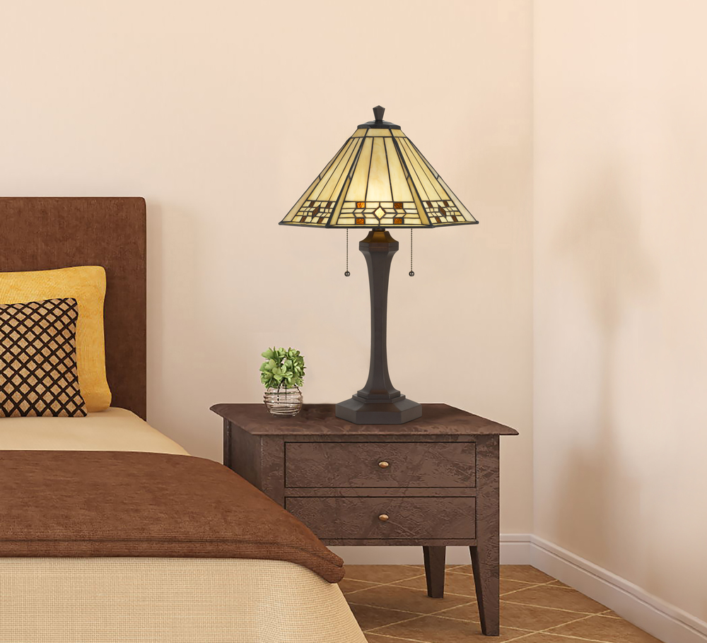 60W X 2 Metal/Resin Tiffany Table Lamp with Pull Chain Switches