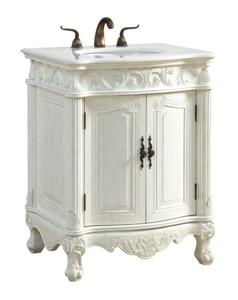 27 inch Single Bathroom vanity in Antique White with ivory white engineered marble
