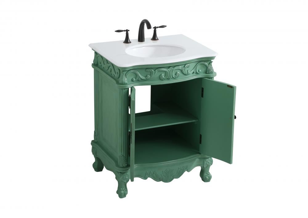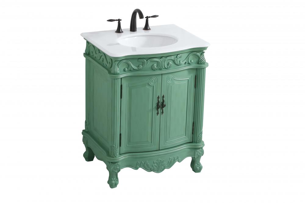 27 inch Single Bathroom vanity in vintage mint with ivory white engineered marble