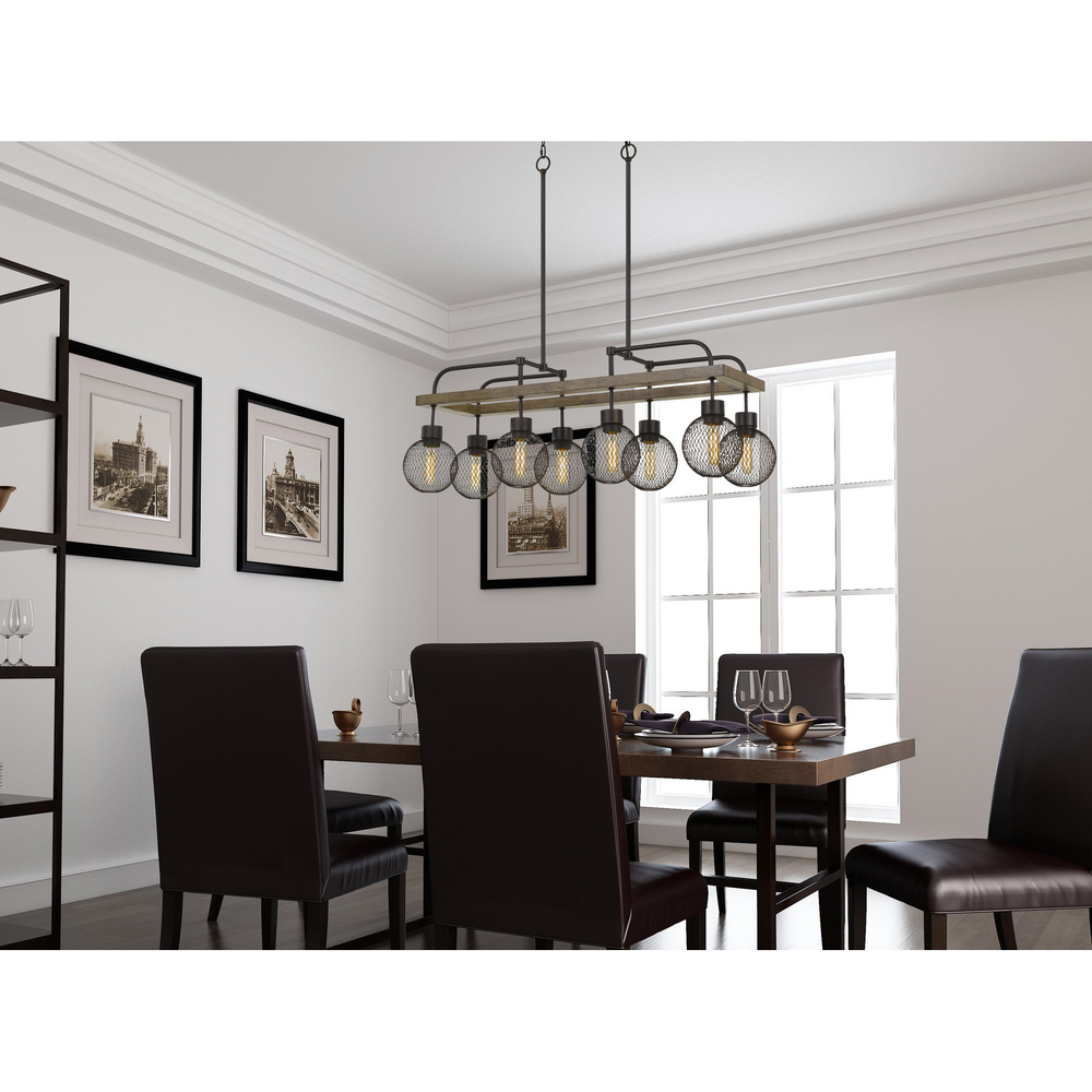 29" Height Rectangular Metal Chandelier in Wood and Iron Finish