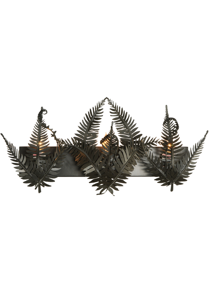 Clusters of lifelike Fern leaves adorn this attractive original fixture. The vanity light is finished in Timeless Bronze; and is handcrafted in the USA by Meyda artisans.