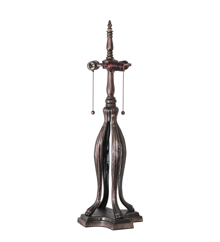 The most beloved of all floral beauties. The Rosebush is beautifully represented in this stunning reproduction of a Tiffany Studio Classic. Petal Pink; Romantic Red and Beautiful Blue art glass Roses ramble on a maze of Garden Green leaves. The shade is created using the famous Meyda Tiffany copperfoil construction. The delicate domed stained glass shade is paired with a Mahogany Bronze finished base. UL and cUL listed for dry locations.