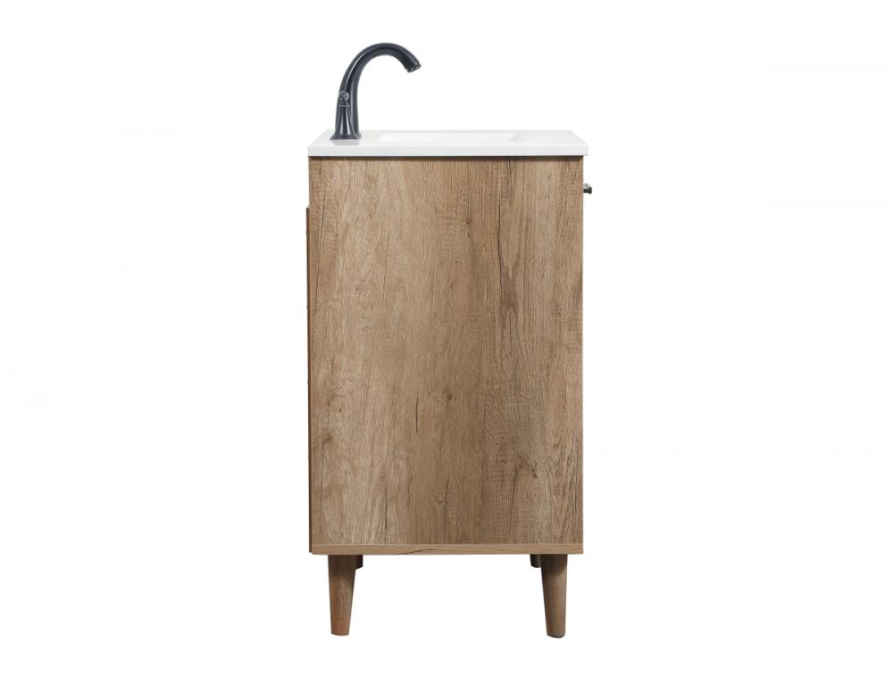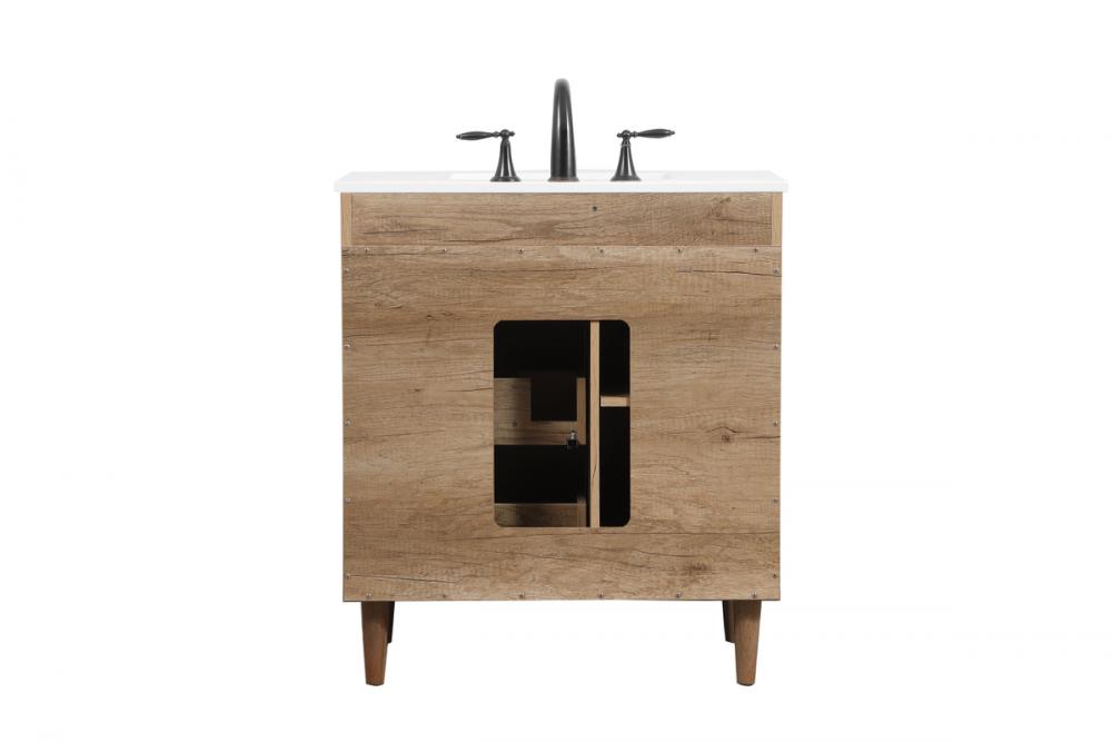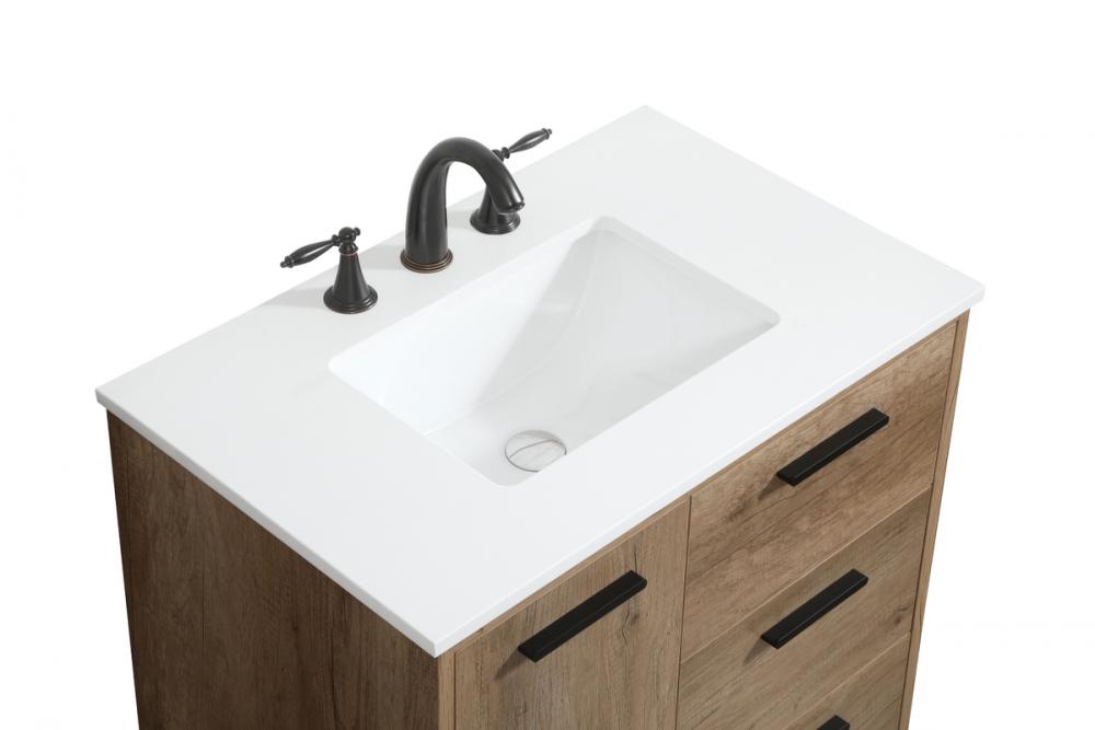 Exquisite modern sophistication is defined with the wood look and black barpulls of this vanity and slender tapered legs. Its length makes it the perfect addition to any sized home, and saves space with its storage area hidden behind the Single cabinet doors and two functional drawers. Topped with a highly durable engineered marble countertop and a porcelain undermount sink, this modern design will become your focal point of your bathroom or powder room. Equipped with soft-closing drawer and doors adds a quiet functional touch.