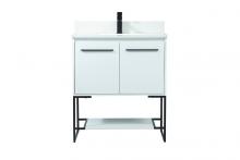 Comes with an undermount porcelain sink and durable ivory white engineered marble stone top