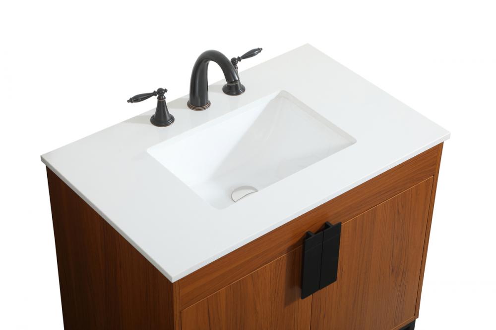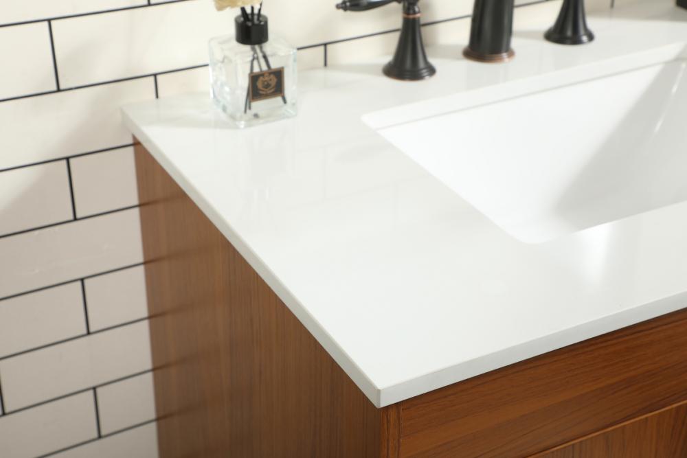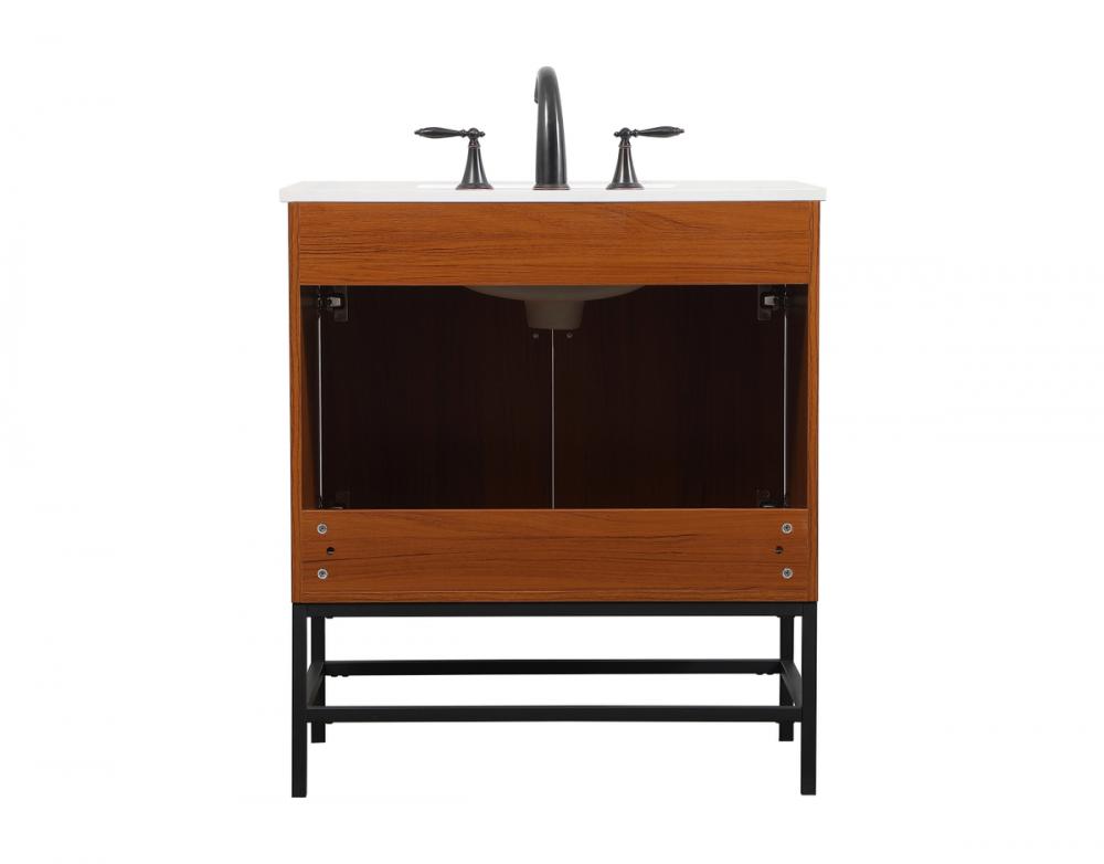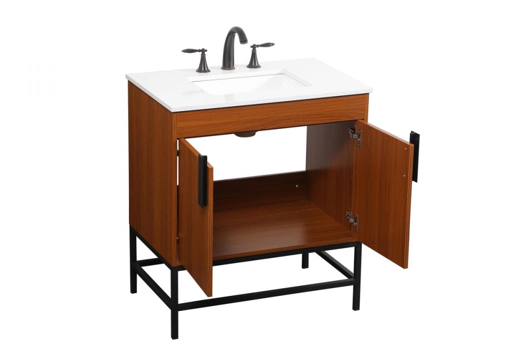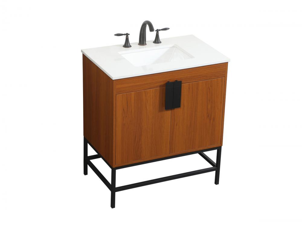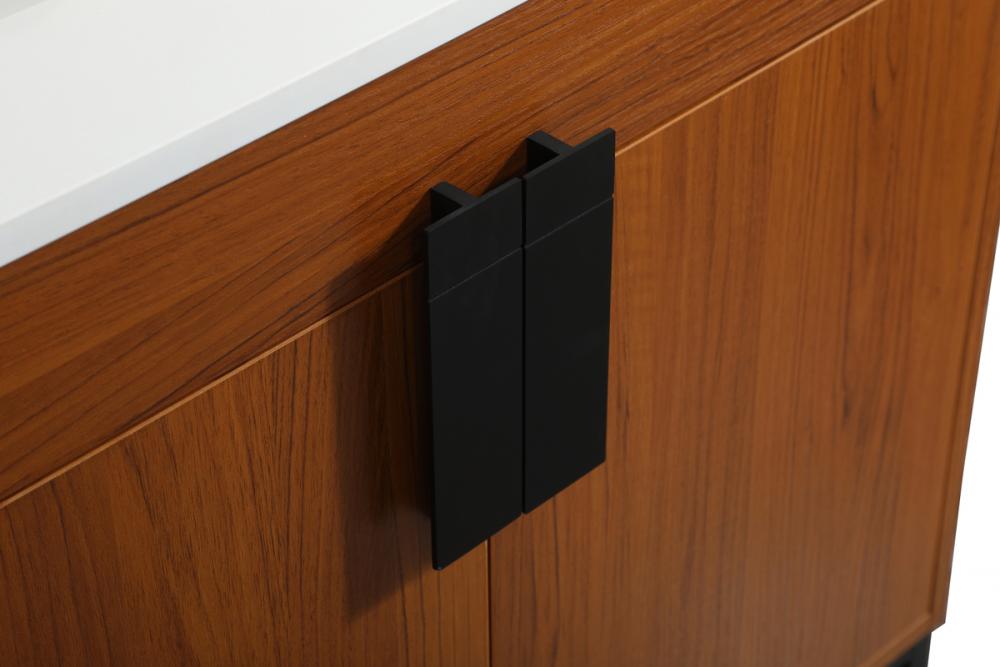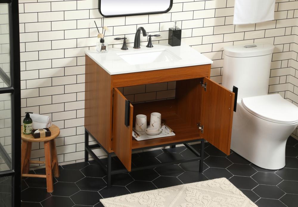 This vanity is a sleek-looking piece of bathroom furniture that is easy to incorporate into your design scheme. The cabinet features a smooth door panel with an oversized steel handle and soft close hinges provide ample room for accessories. Constructed of engineered wood, the powder-coated metal rod legs are an urban industrial look that we love. Minor assembly of the metal legs needed to get this vanity up and running.