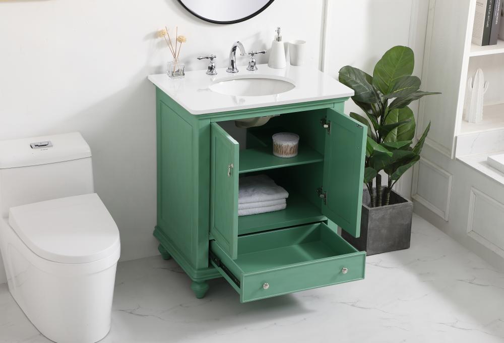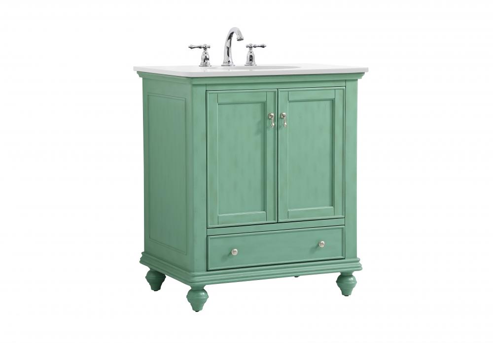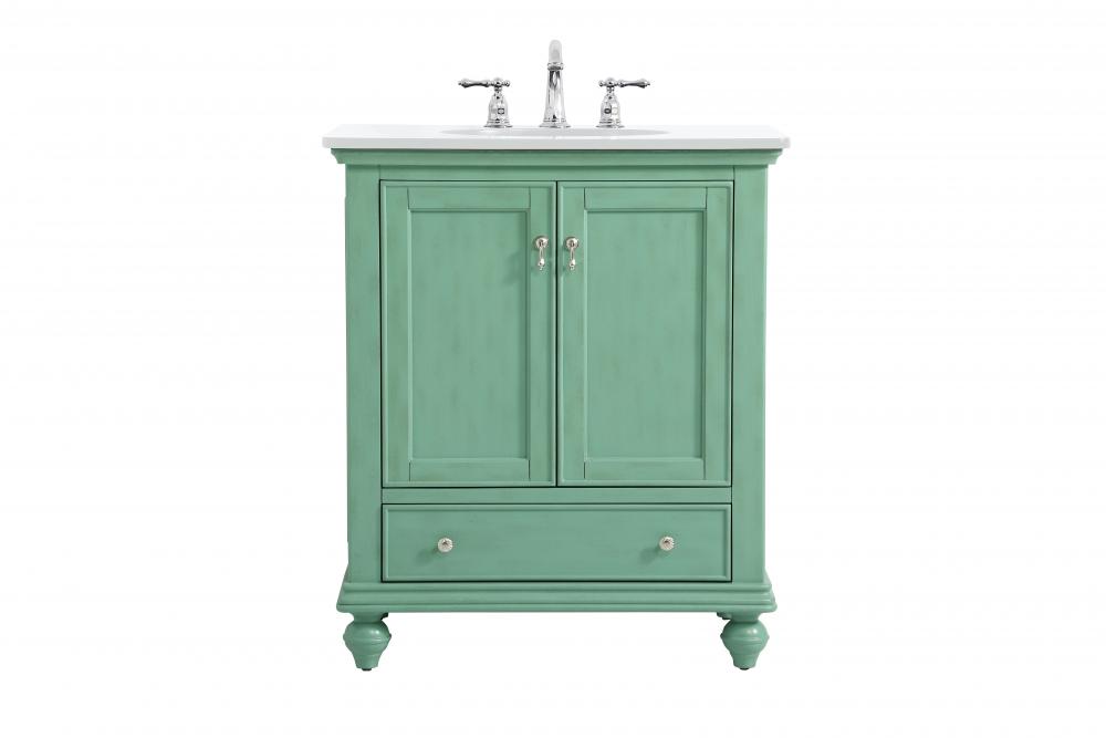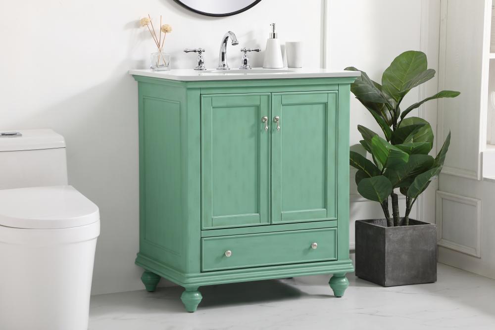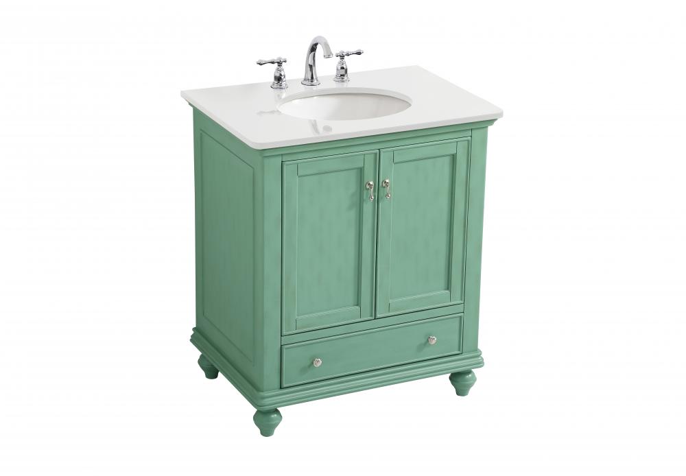 30 inch Single Bathroom vanity in vintage mint with ivory white engineered marble
