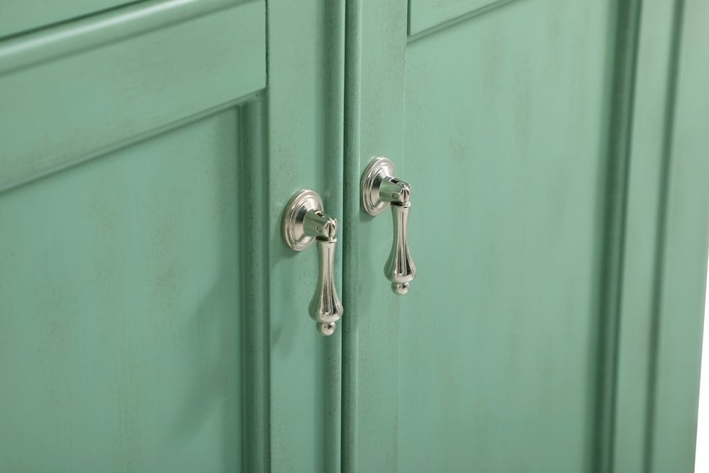 Hand painted in vintage mint finish with distress paint application