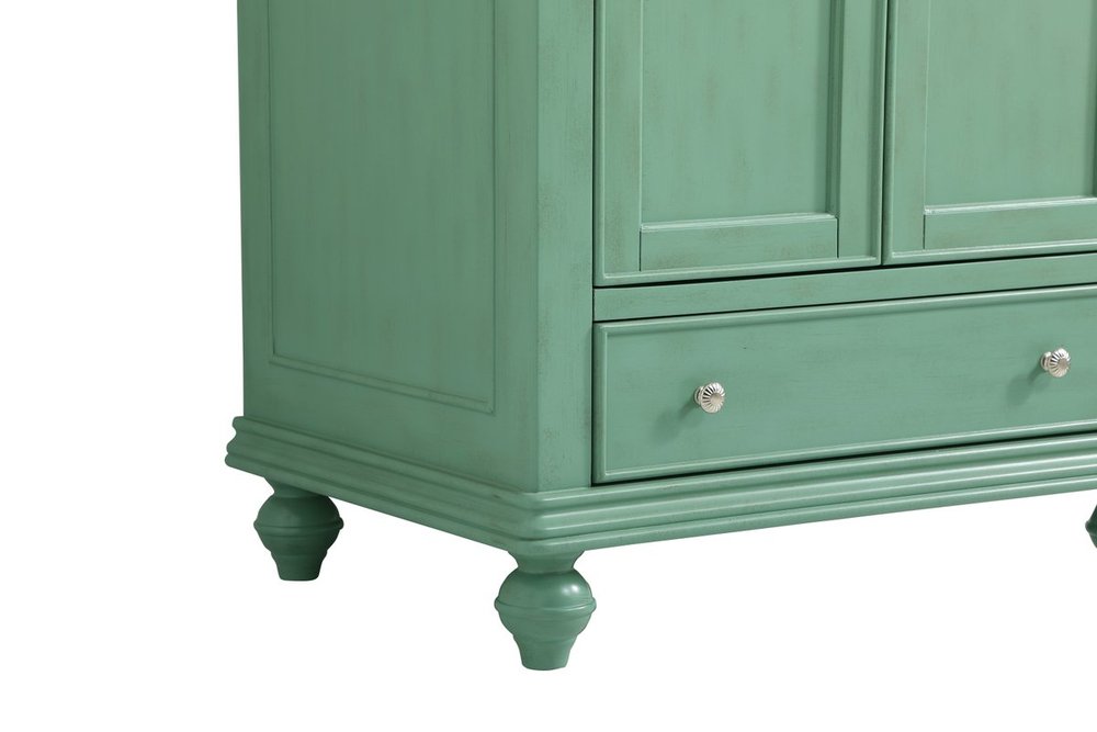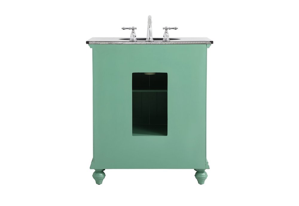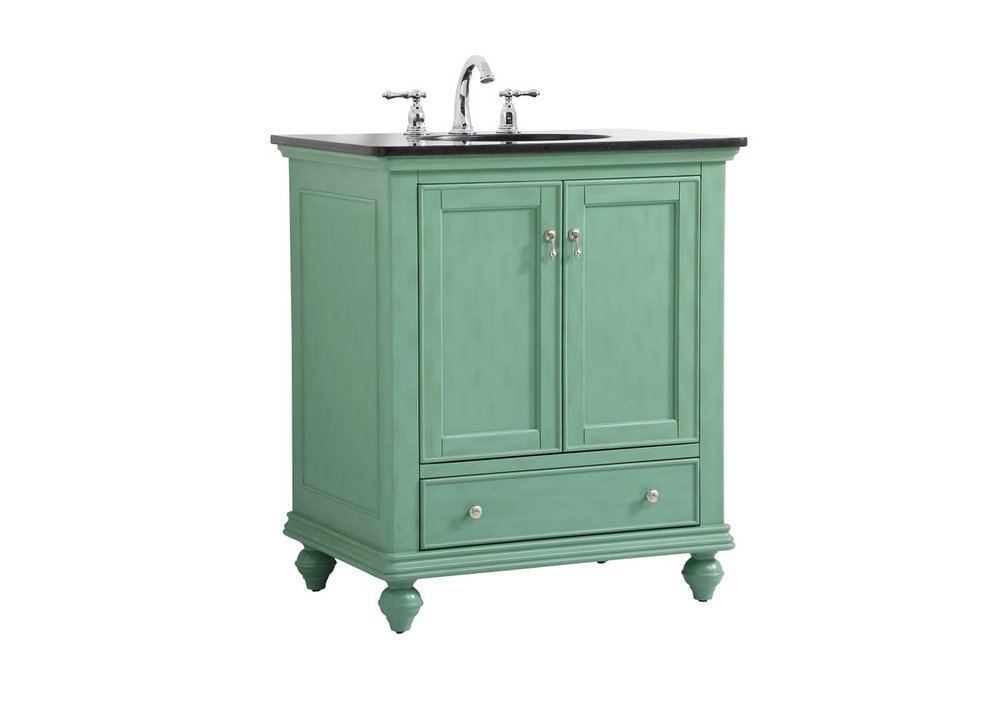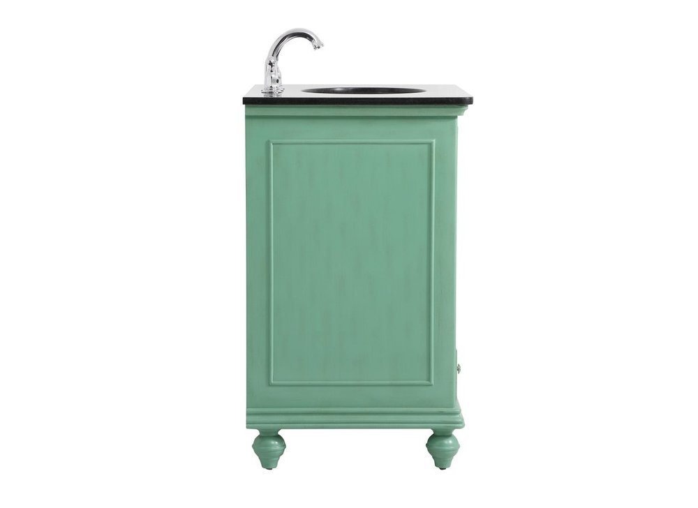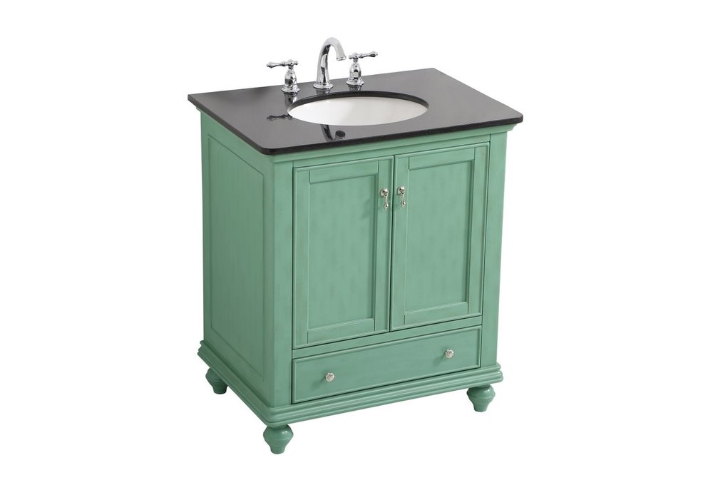 Create a refined and relaxing bath space with this contemporary design vanity, presenting its simplicity and clean straight lines in a minimalist appeal. This vanity, crafted of solid poplar wood and engineered wood panels, provides ample storage within its soft-close cabinet door, accentuated with metal hardware. Rounding out the design is a black granite top with a white porcelain under-mount oval sink. Convenient access for plumbing installation with cut out back panel. Hand painted finish with distressing application to provide an antique effect.
